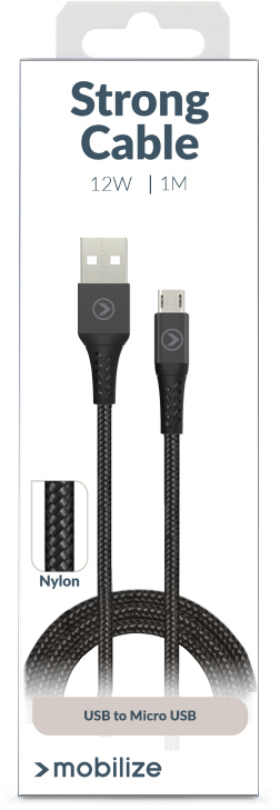 Mobilize Strong Nylon Cable Usb To Micro Usb 1M. 12W Black