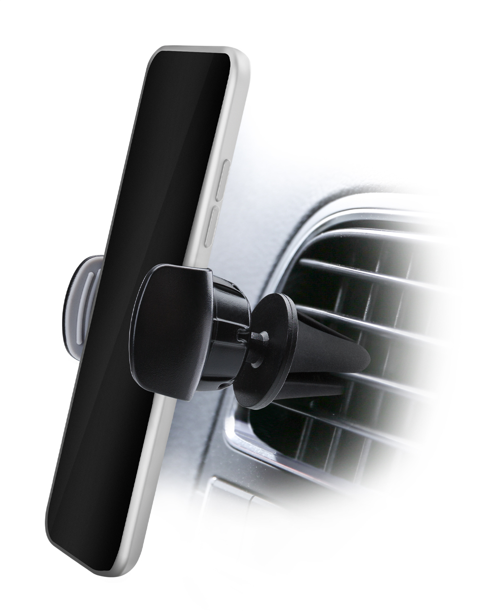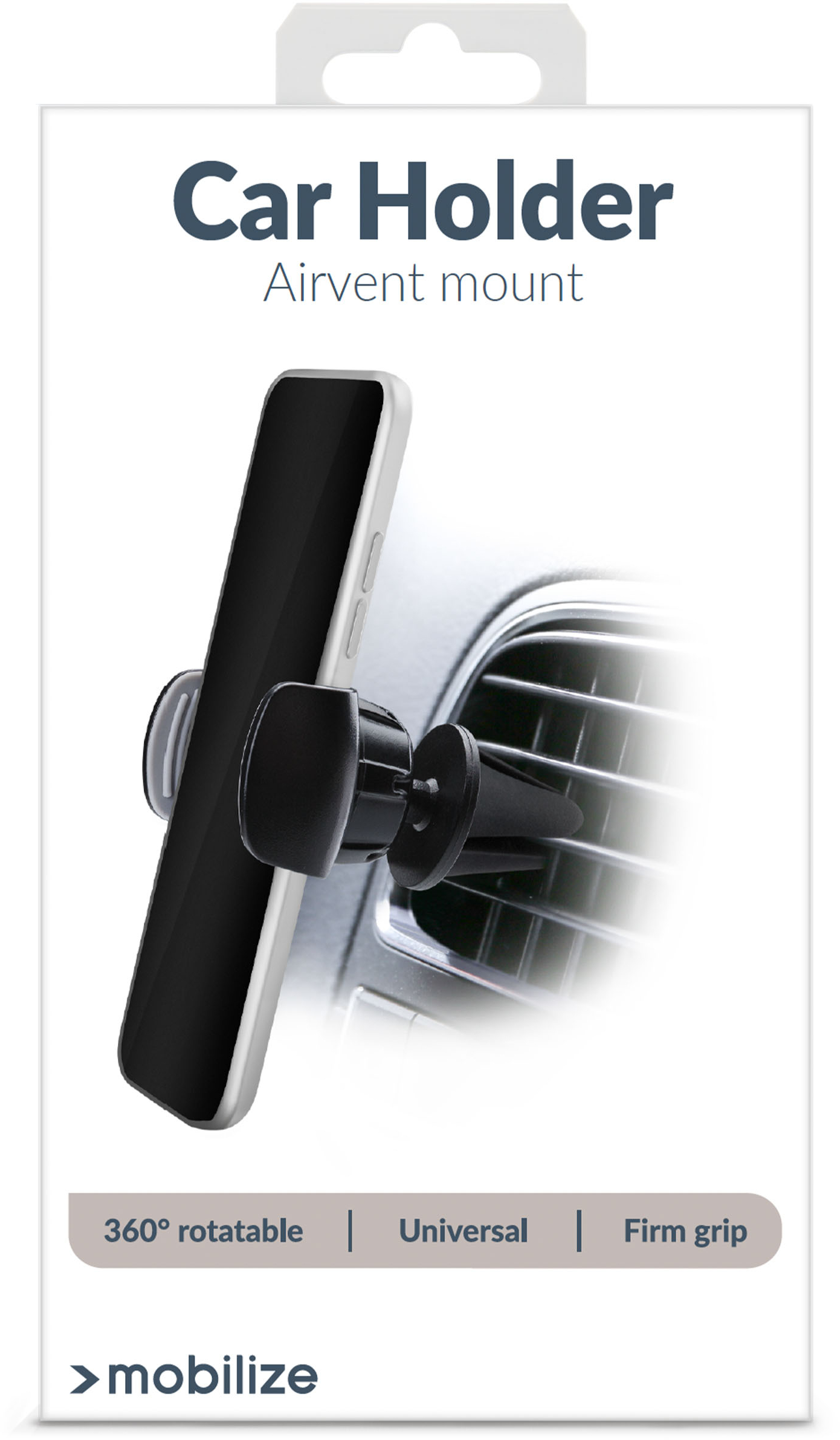 De Mobilize Universal Holder Air Vent is een kleine, onopvallende houder voor in uw auto. Hij is gemaakt van een PVC- materiaal in combinatie met rubber. U kunt hem door middel van rubberen pootjes eenvoudig bevestigen aan het luchtrooster van uw auto. De houder is voorzien van een draaimechanisme waarmee hij niet alleen horizontaal of verticaal te positioneren is, maar ook nog eens 360° draaibaar is. Vervolgens kunt u hem nog 45° kantelen om hem zo ook nog eens iets schuin te positioneren. De rechterzijde van de houder is uittrekbaar, zodat hij geschikt is voor bijna elk toestel. Ook voor navigatiesystemen en andere apparaten met een breedte van 55 tot 80 mm is deze houder geschikt. De antislip laag aan beide kant houdt uw apparaat stevig op zijn plek.