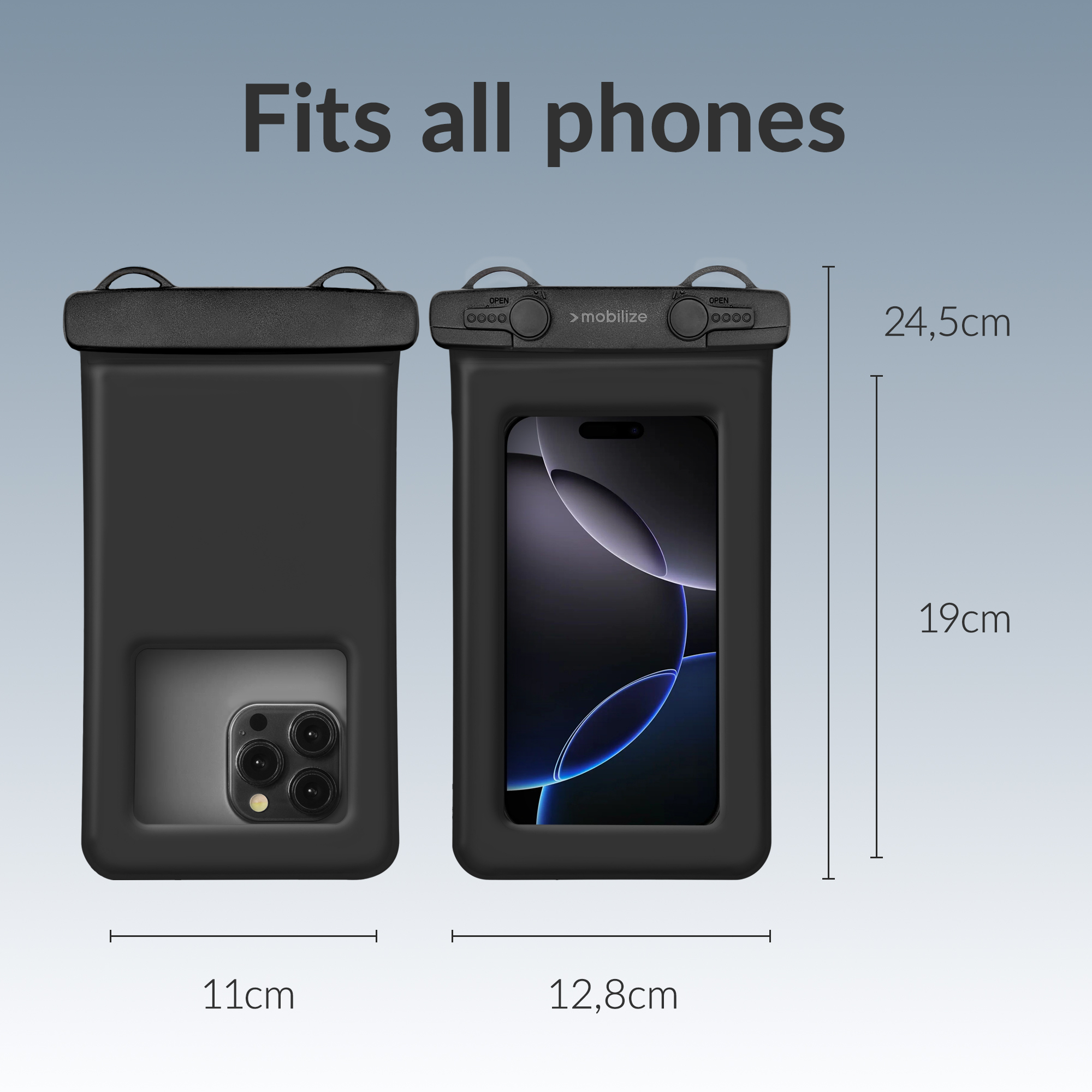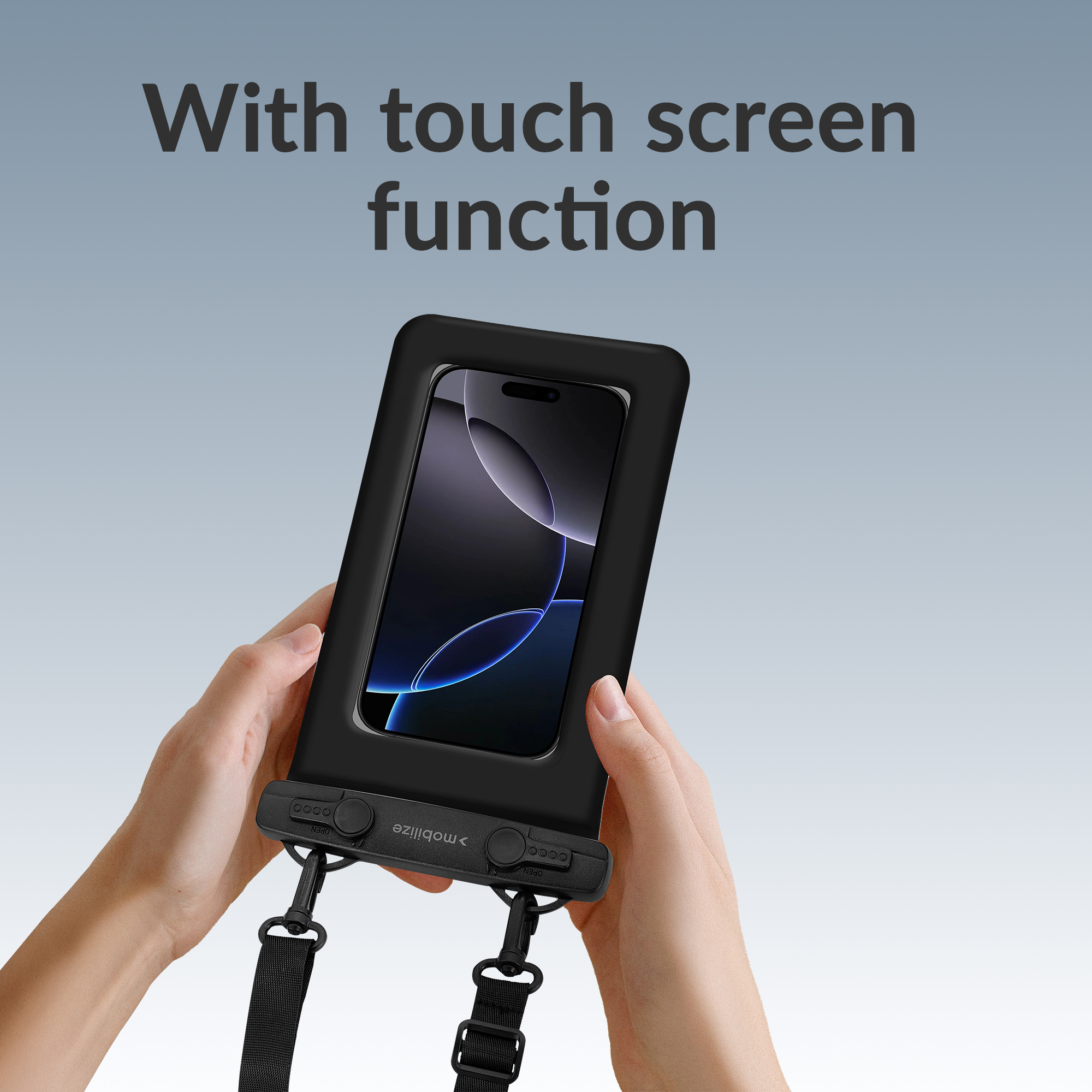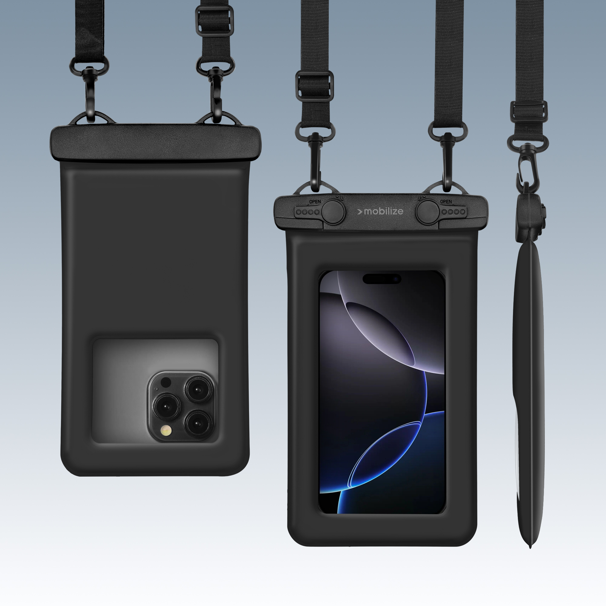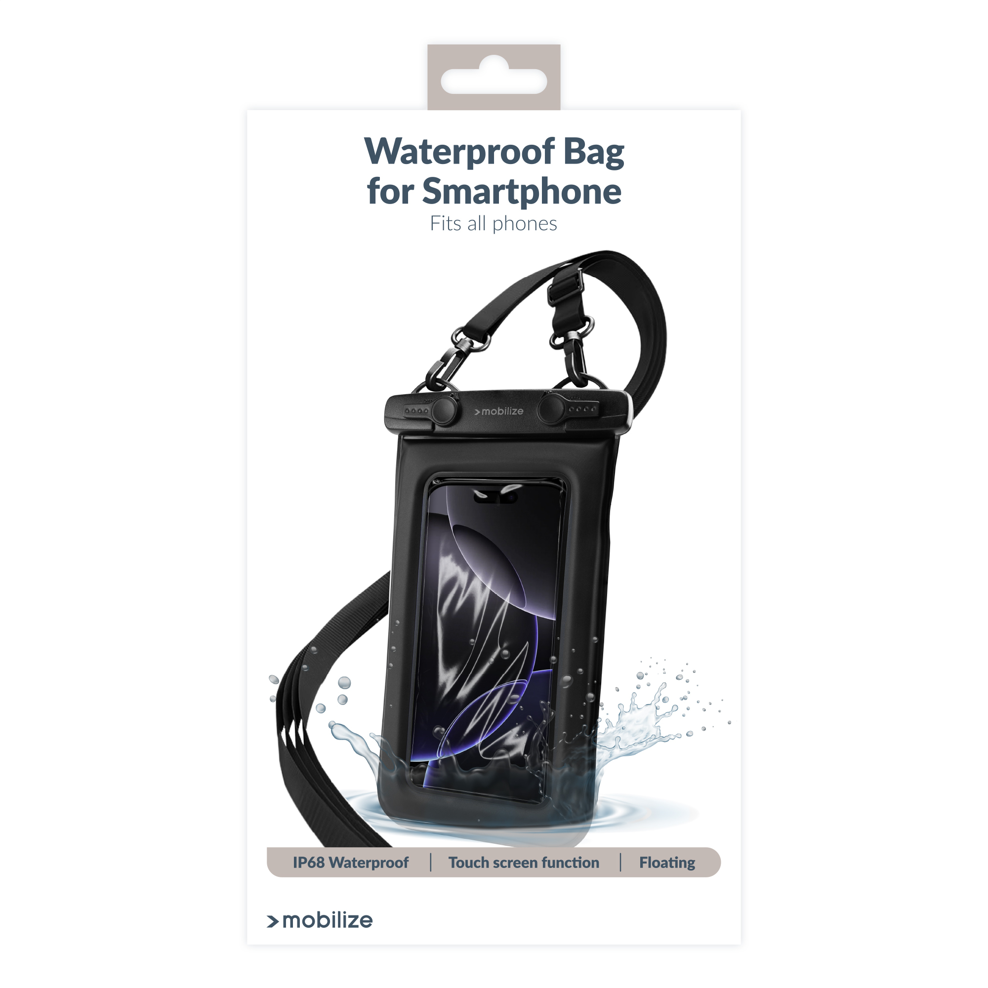 De Mobilize Universal Waterproof Floating Bag is dé oplossing om je smartphone veilig te gebruiken in en rondom het water. Dankzij de IP68-waterdichte bescherming blijft je toestel volledig beschermd tegen water, zand en stof, ideaal voor een dag aan het strand, varen of snorkelen.