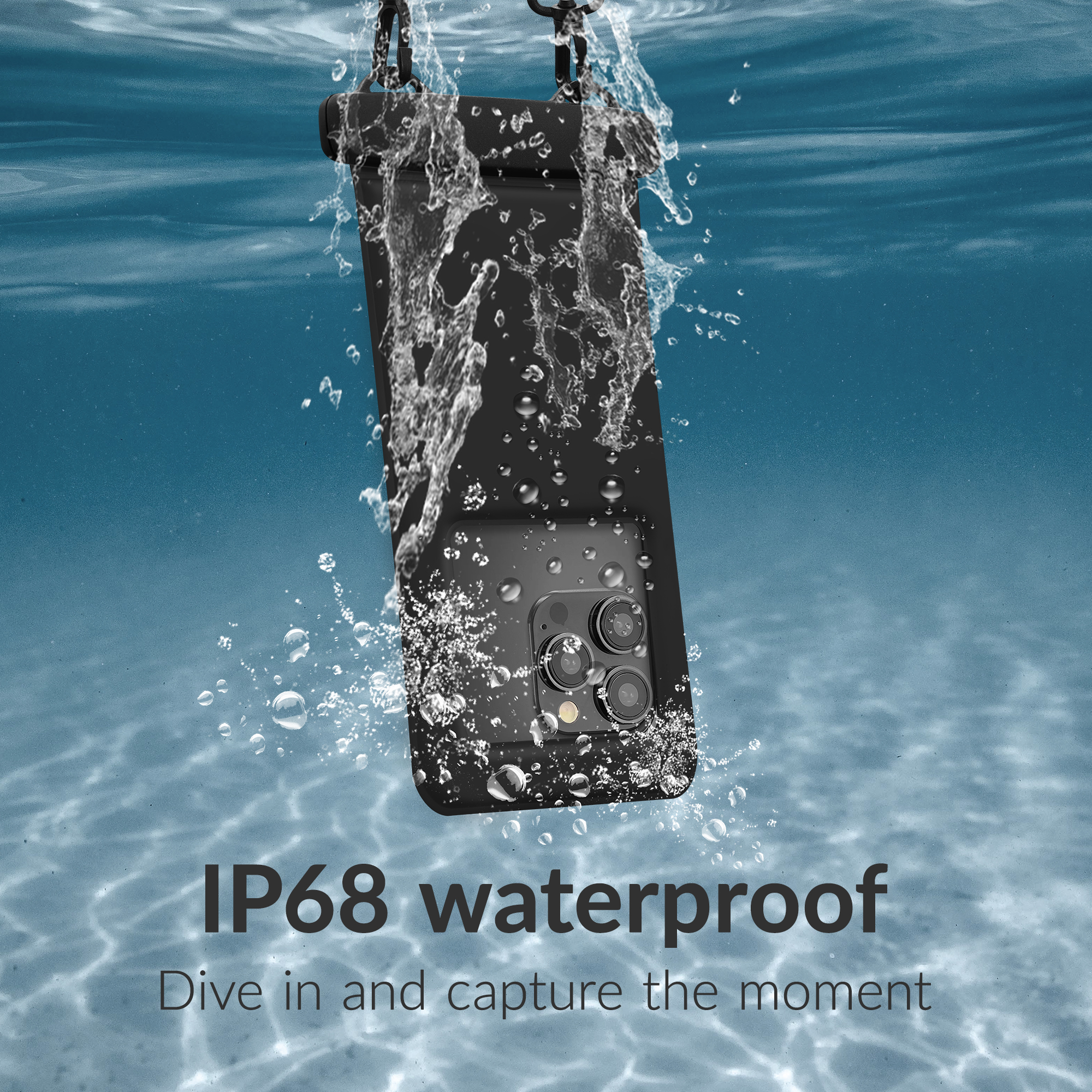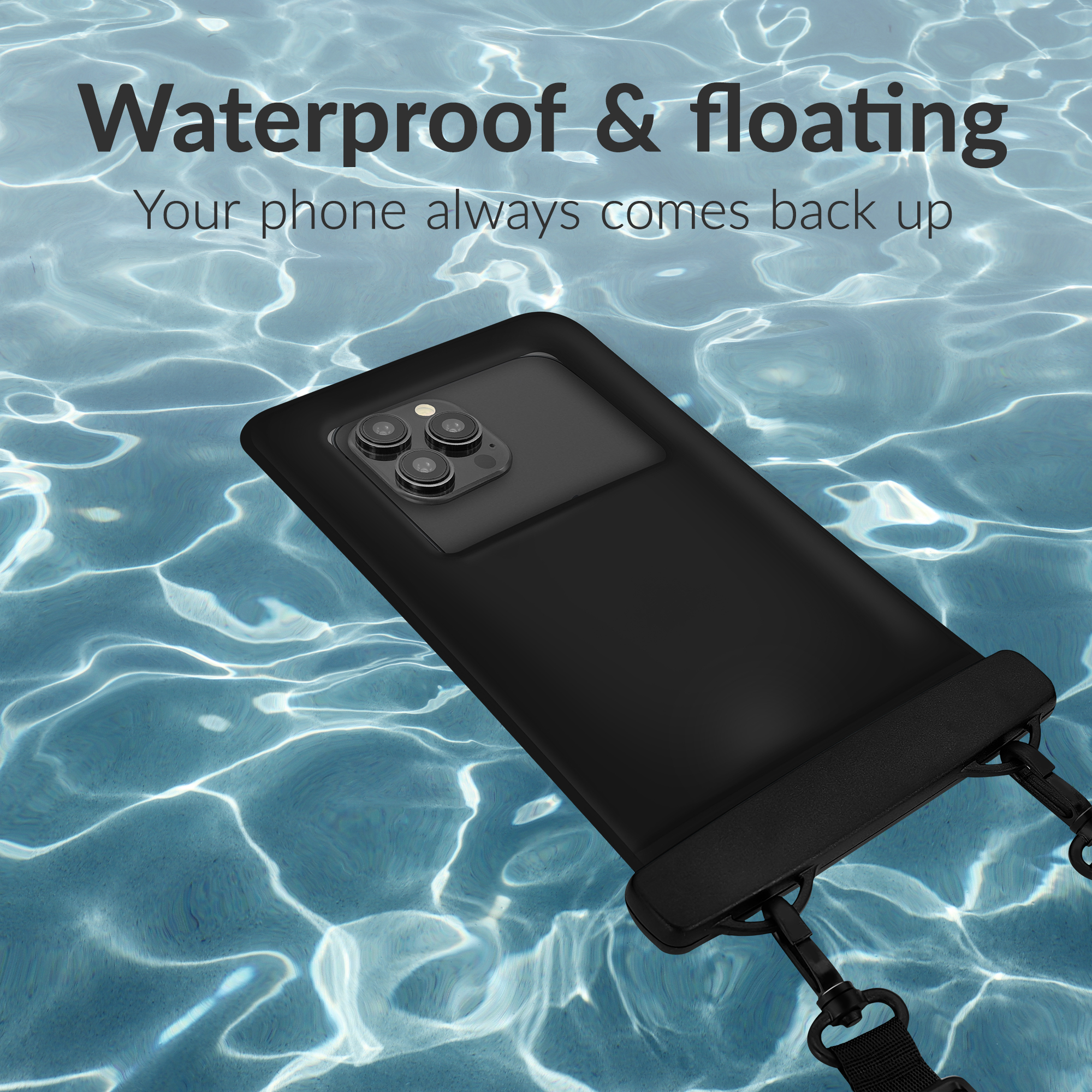 Met een stevige sluiting en volledig afgesloten ontwerp voldoet deze tas aan de IP68-norm, wat betekent dat je smartphone ook onder water veilig blijft. Dankzij het drijvend vermogen zinkt je toestel niet, zelfs niet wanneer je hem per ongeluk loslaat in het water.