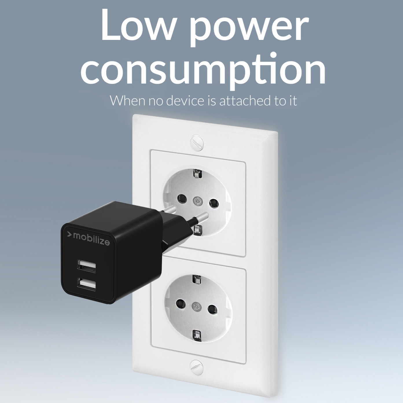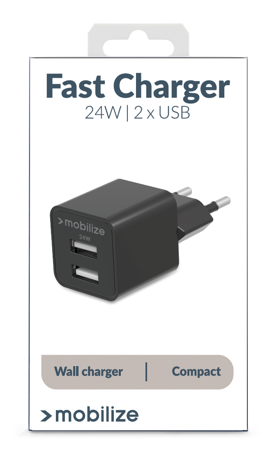 De Mobilize Wall Charger is een uiterst compacte lader voor in het stopcontact. Met 2 x USB kunt u tot 2 apparaten tegelijk opladen. De praktische lader levert tot maximaal 24W aan vermogen.