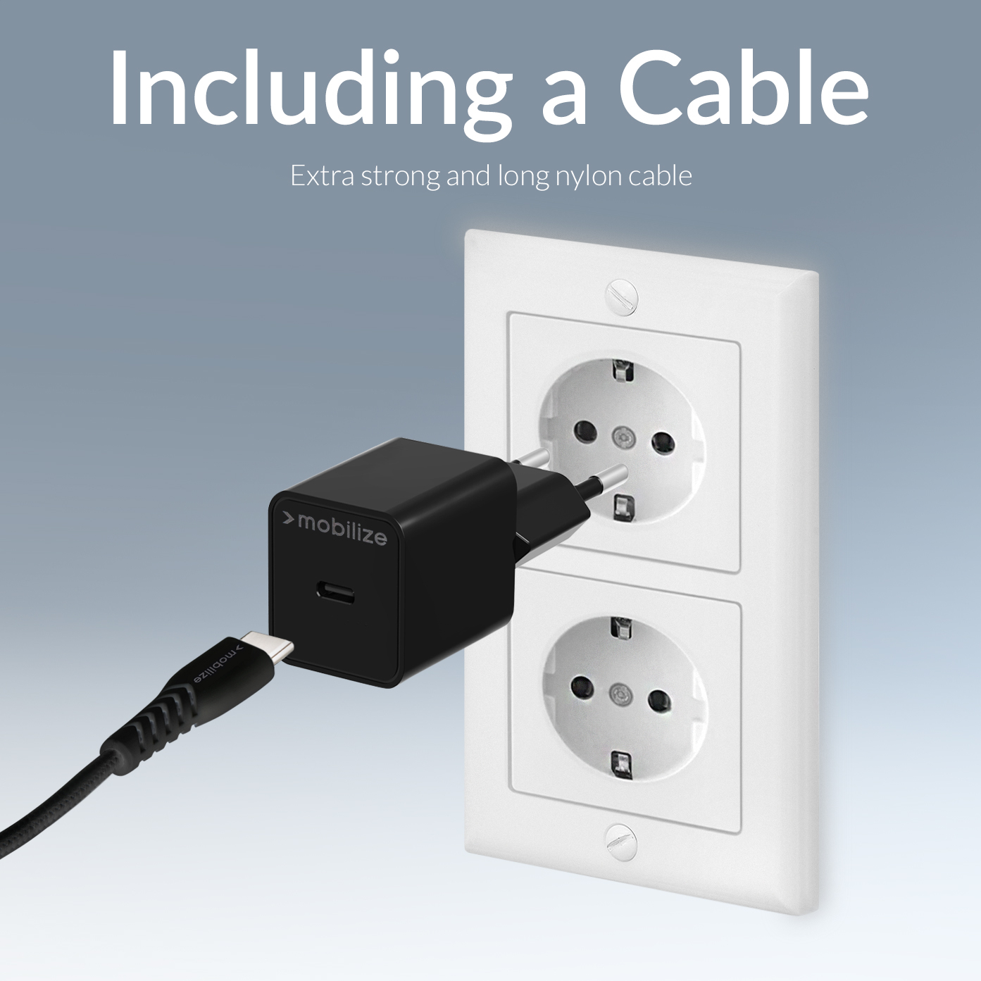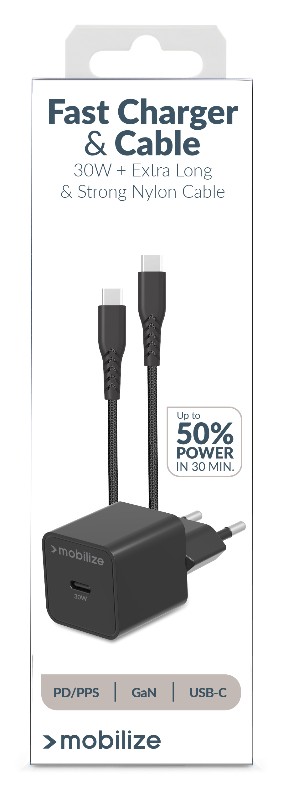 De Mobilize Wall Charger USB-C GaN 30W with PD/PPS, samen met een robuuste USB-C Nylon kabel, is de perfecte combinatie voor snelle en betrouwbare oplaadoplossingen voor je apparaten. Het is de ideale set voor iedereen die op zoek is naar een snelle, efficiënte en betrouwbare laadoplossing. Deze set biedt alles wat je nodig hebt om je apparaten snel en veilig op te laden.