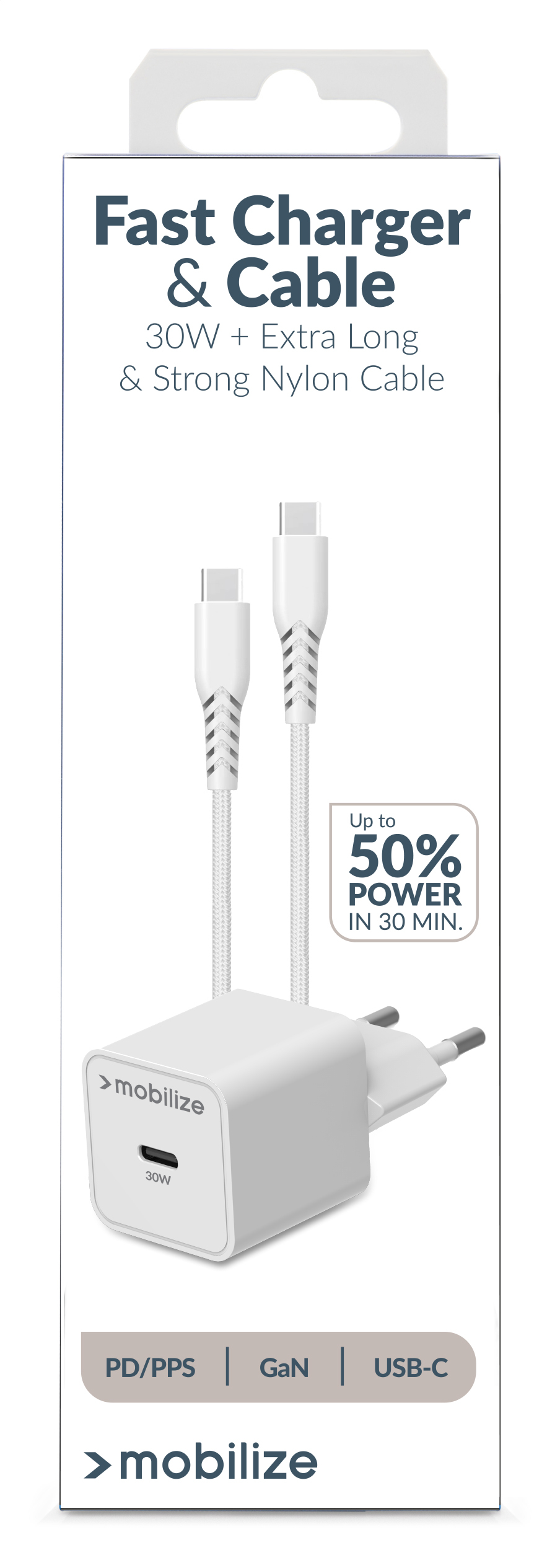 De Mobilize Wall Charger USB-C GaN 30W with PD/PPS, samen met een robuuste USB-C Nylon kabel, is de perfecte combinatie voor snelle en betrouwbare oplaadoplossingen voor je apparaten. Het is de ideale set voor iedereen die op zoek is naar een snelle, efficiënte en betrouwbare laadoplossing. Deze set biedt alles wat je nodig hebt om je apparaten snel en veilig op te laden.