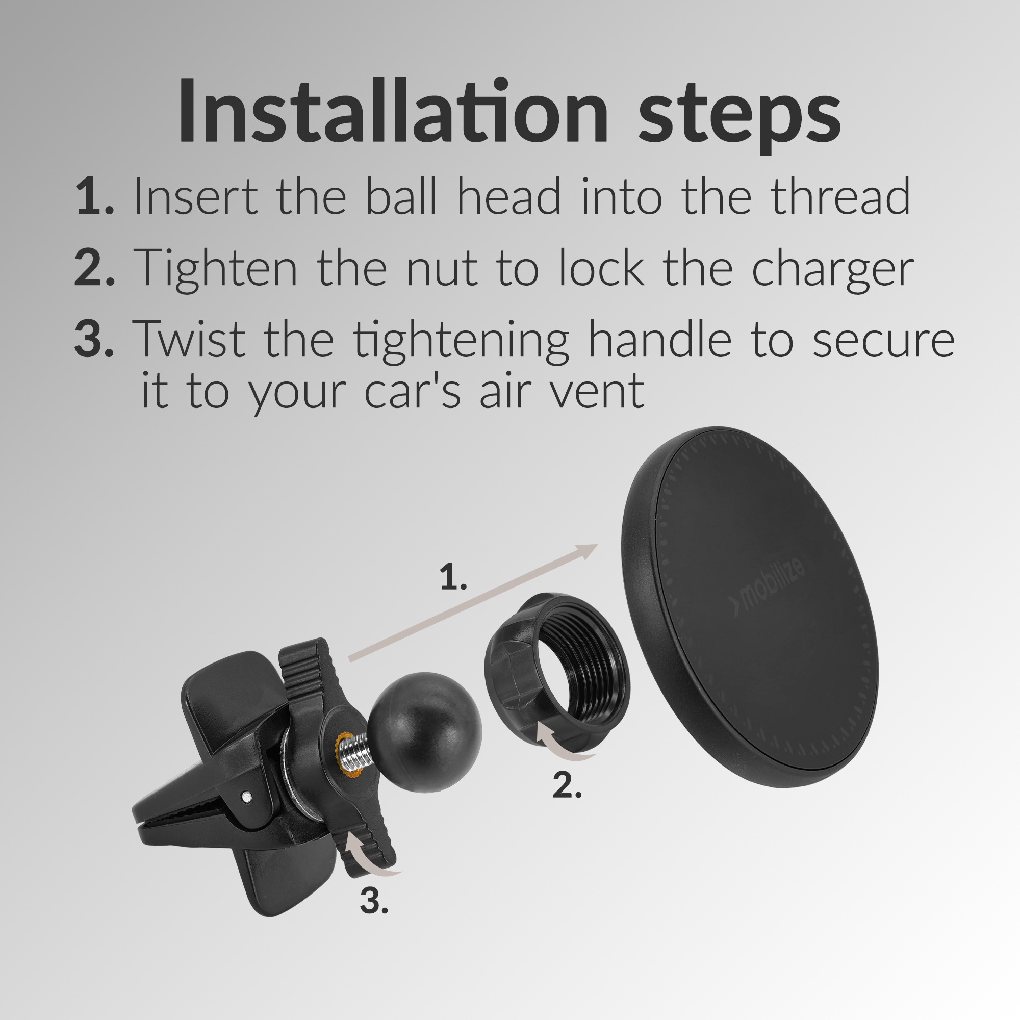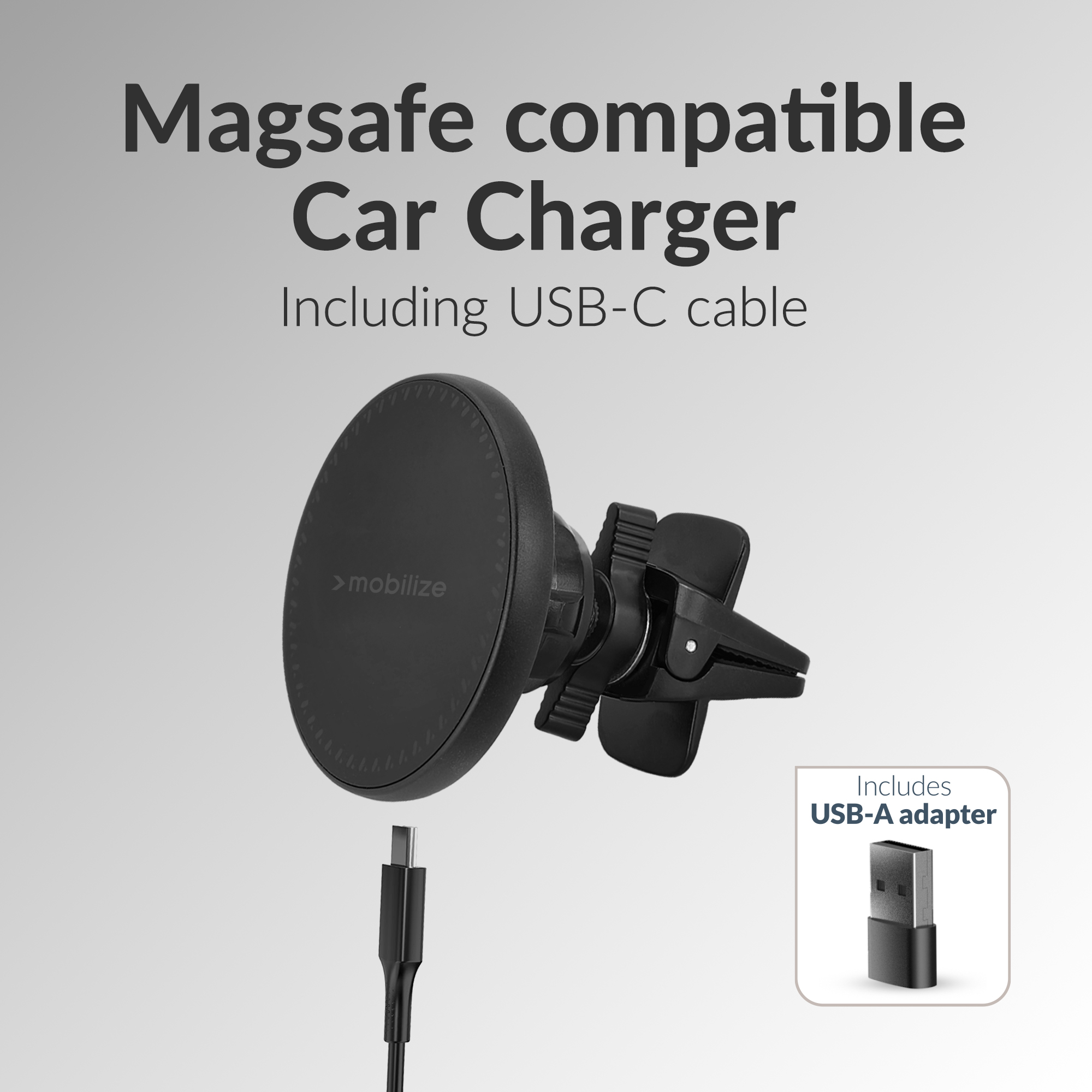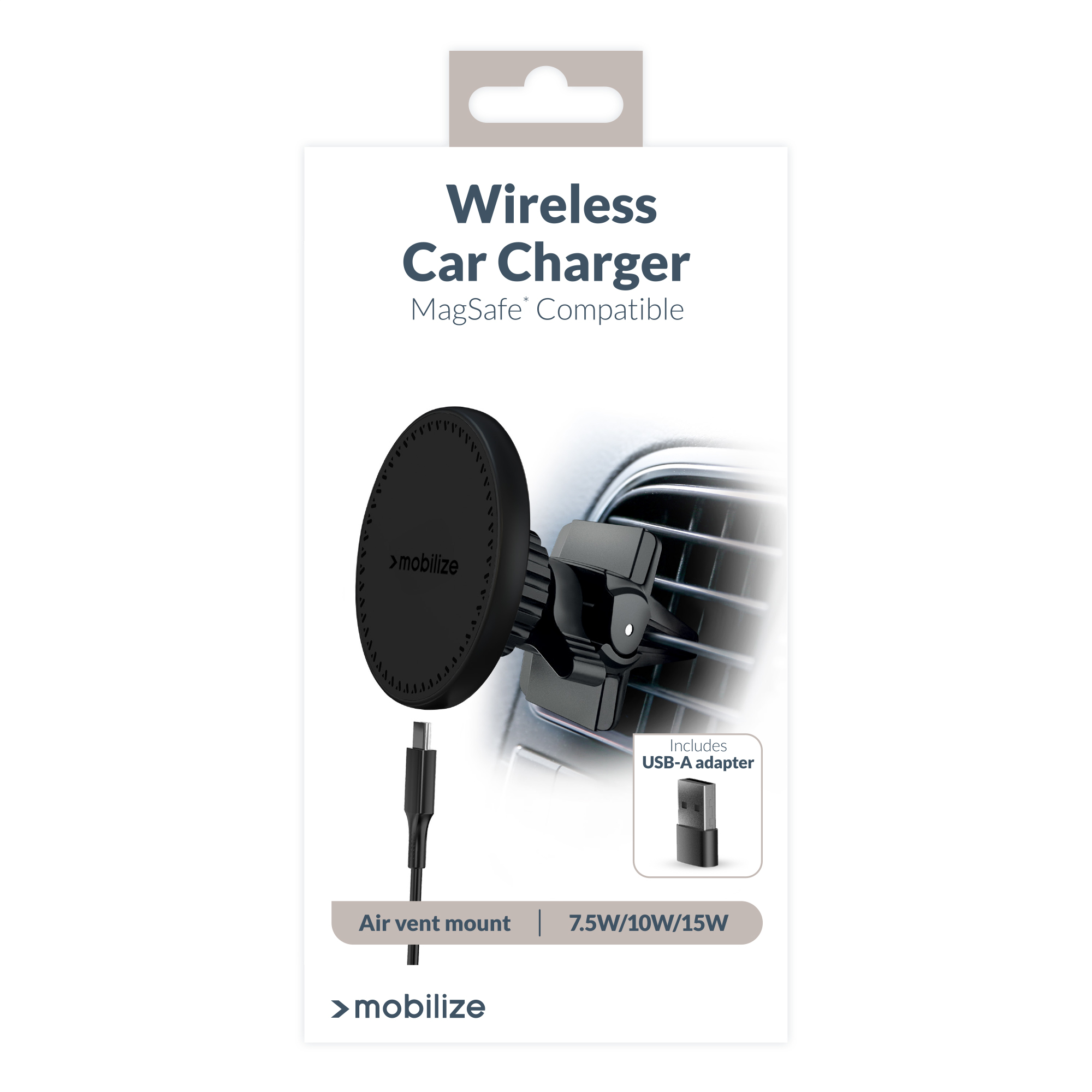 Met de Mobilize Wireless MagSafe Compatible Car Holder/Charger 5W/7.5W/10W/15W Black geniet je van een snelle, efficiënte en stijlvolle manier om jouw toestel op te laden terwijl je onderweg bent. Deze draadloze magnetische lader maakt gebruik van MagSafe® technologie, wat perfect is voor jouw Apple iPhone (12 en nieuwer) en plaats je in het luchtrooster van jouw auto.