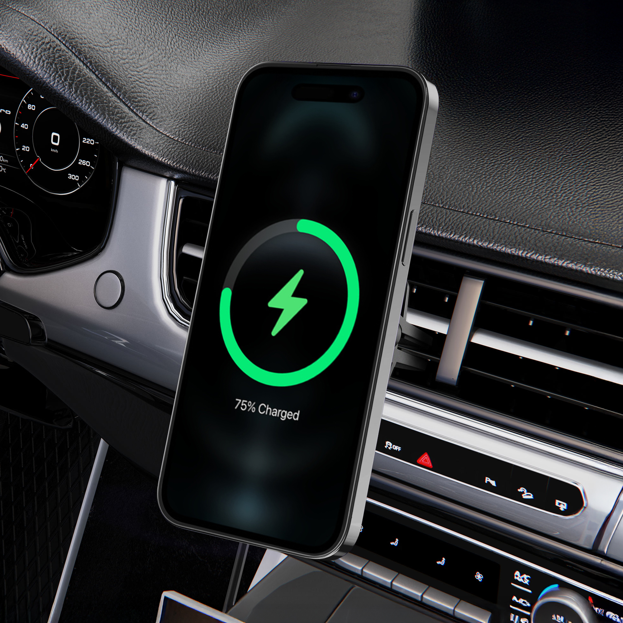 Dankzij de magnetische precisie klikt de Mobilize Car Holder/Charger eenvoudig en stevig vast aan jouw toestel, zodat je zonder zorgen onderweg kunt opladen. We adviseren je om een hoesje te gebruiken met een extra magneet die MagSafe® ondersteunt, zodat je jouw telefoon optimaal beschermt tegen vallen en de magnetische aantrekking versterkt.