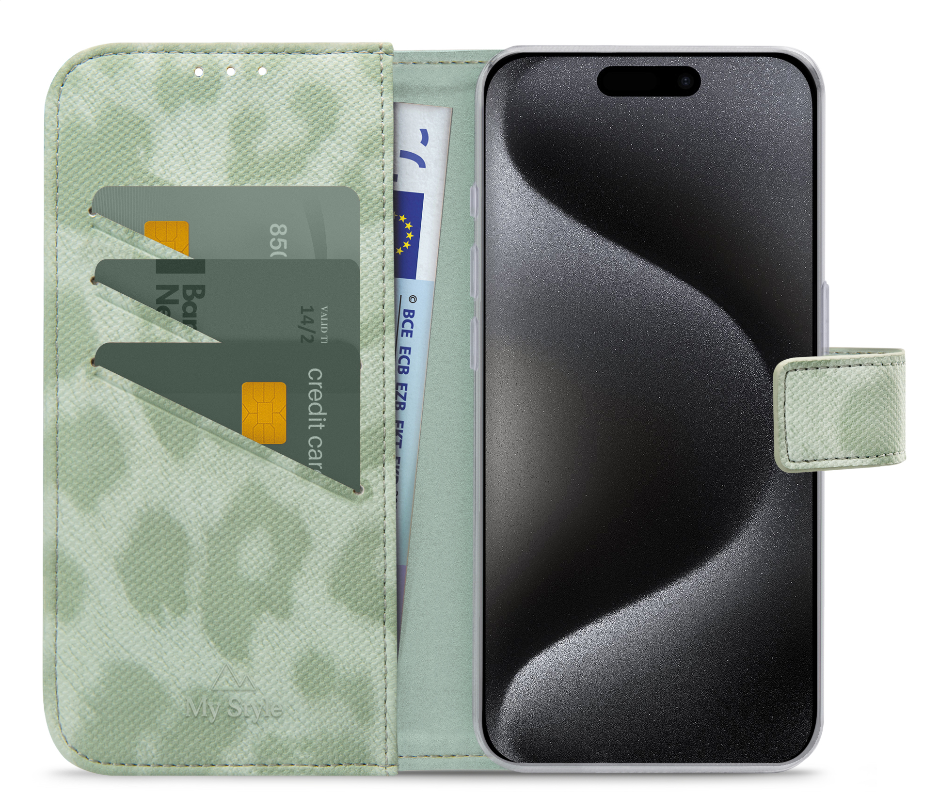 My Style Flex Wallet For Apple Iphone 15 Pro Green Leopard