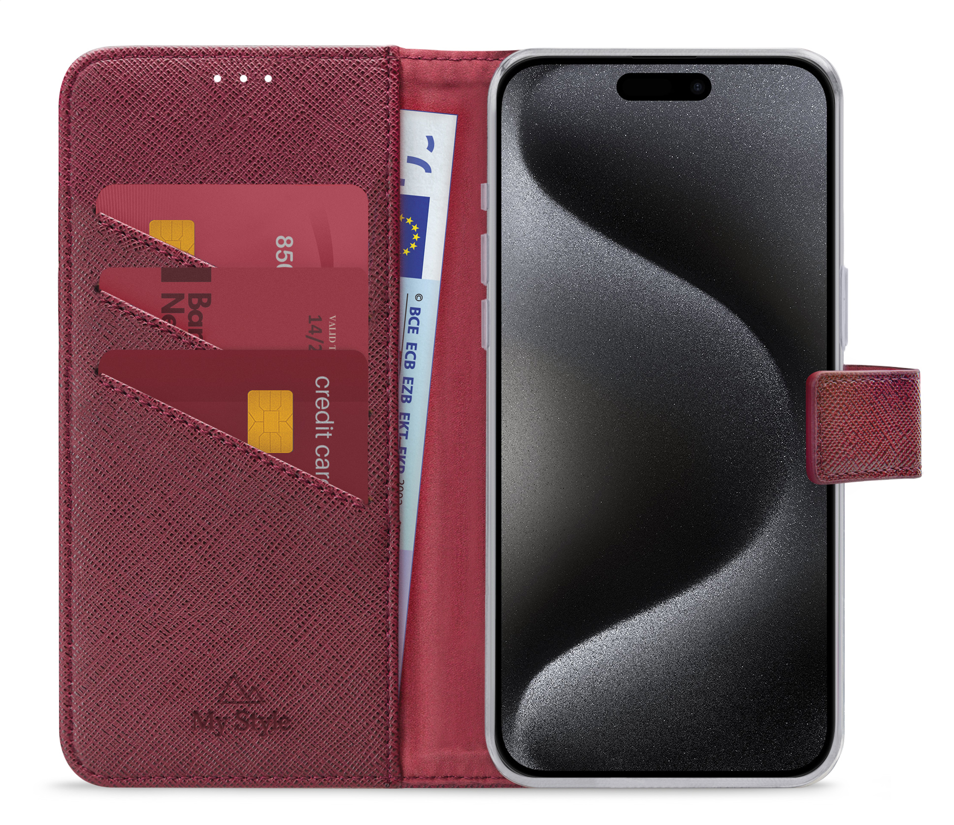 Binnenin de My Style Flex Wallet zitten drie vakjes voor uw ID-kaart, bankpas of creditkaart. Daaronder vindt u een groter opbergvak met genoeg ruimte voor bijvoorbeeld papiergeld.