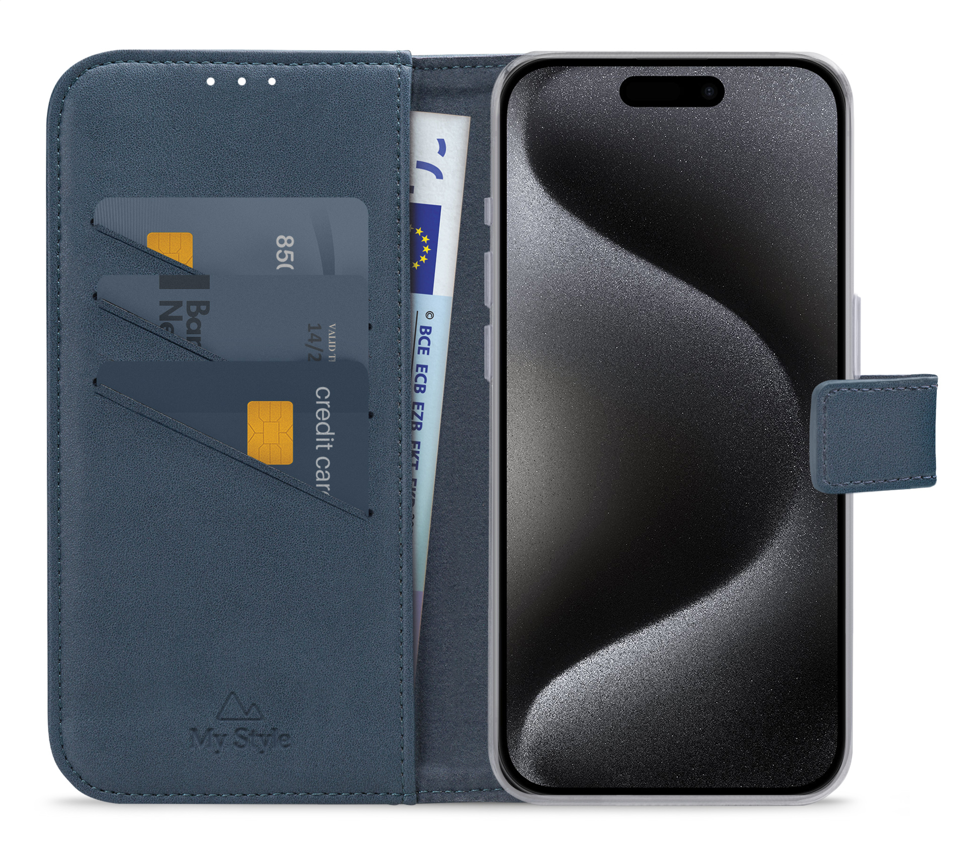 Binnenin de My Style Flex Wallet zitten drie vakjes voor uw ID-kaart, bankpas of creditkaart. Daaronder vindt u een groter opbergvak met genoeg ruimte voor bijvoorbeeld papiergeld.