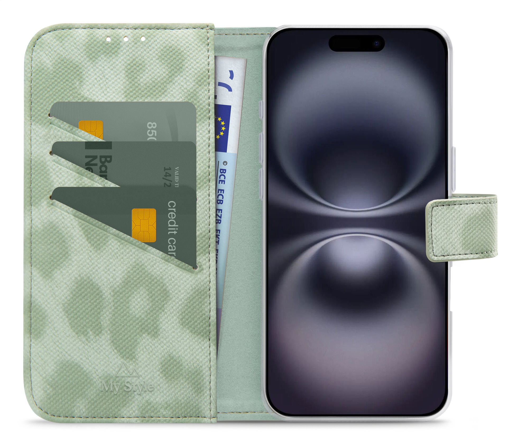 My Style Flex Wallet For Apple Iphone 16 Plus Green Leopard