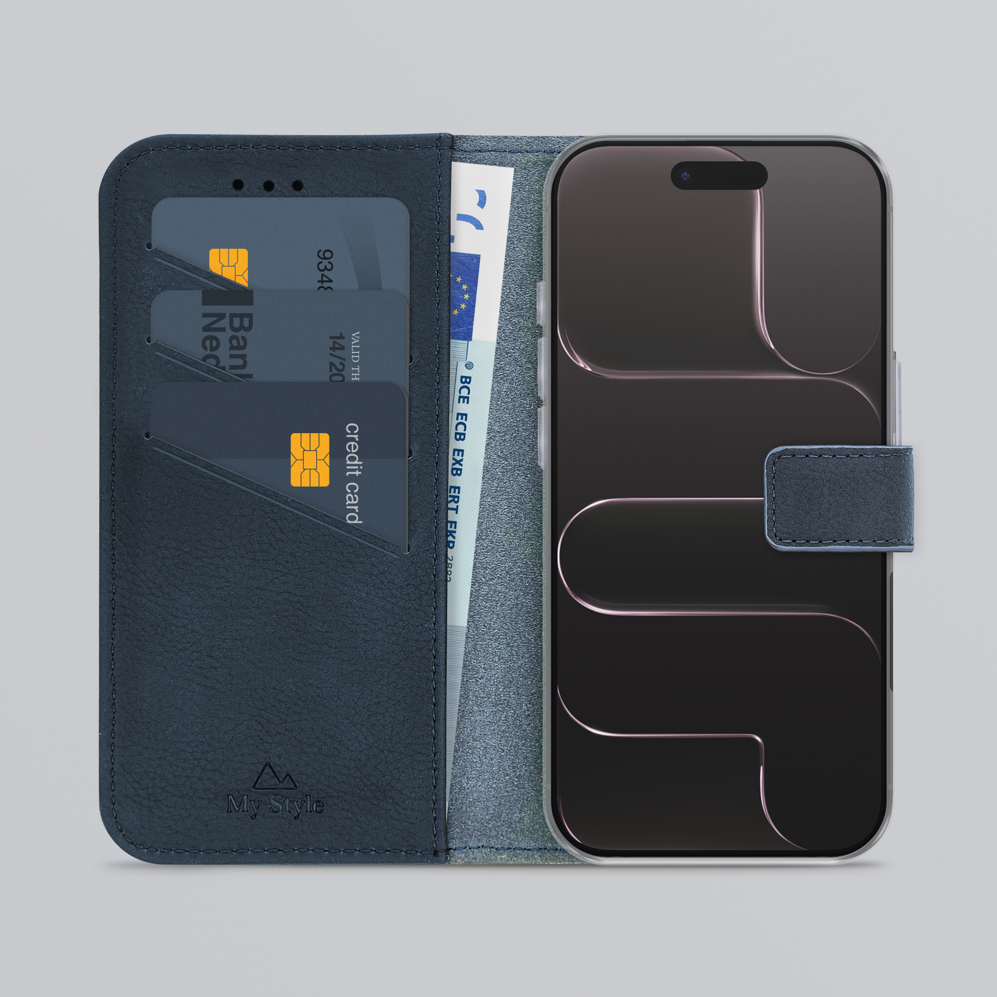 Binnenin de My Style Flex Wallet zitten drie vakjes voor uw ID-kaart, bankpas of creditkaart. Daaronder vindt u een groter opbergvak met genoeg ruimte voor bijvoorbeeld papiergeld.