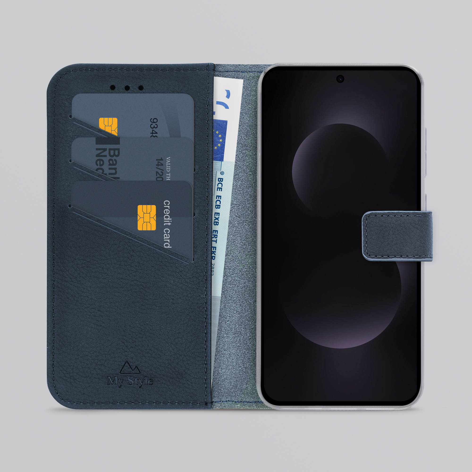 Binnenin de My Style Flex Wallet zitten drie vakjes voor uw ID-kaart, bankpas of creditkaart. Daaronder vindt u een groter opbergvak met genoeg ruimte voor bijvoorbeeld papiergeld.