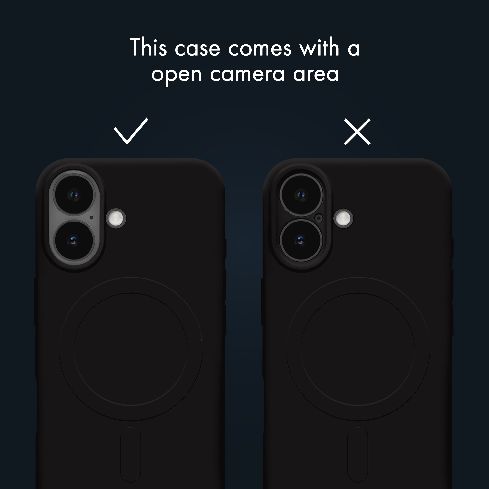 • Camera-uitsparing: Compact en precies! *Check de afbeeldingen in welke gevallen er een toestelspecifieke uitsparing beschikbaar is