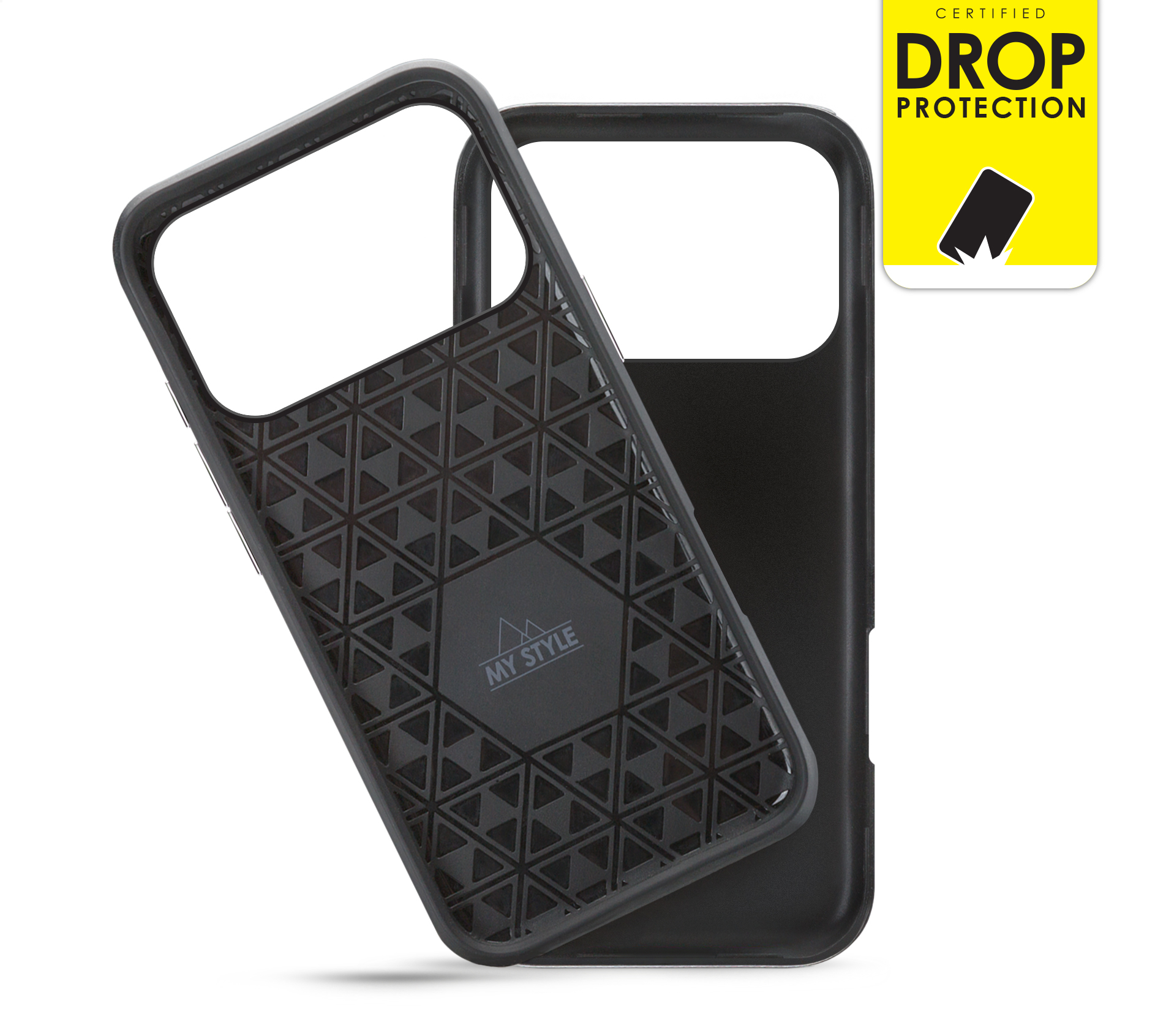 De My Style Tough case is opgebouwd uit twee materialen die elkaar versterken. De buitenkant is gemaakt van TP (polycarbonaat). Dat is een dunne, harde laag wat goed beschermd tegen krassen. De flexibele binnenkant is gemaakt van stevig TPU (Thermoplastic polyurethaan) en is bijzonder geschikt om vallen en stoten op te vangen. Het TPU loopt iets door zodat een kleine, opstaande rand ook de touchscreen van uw mobiel helpt beschermen. De Tough Case heeft een stijlvol triangle motief en Sensitive Touch knoppen met een mooie metal-look. Om uw mobiel op te laden hoeft u de case nooit te verwijderen want aan alle uitsparingen is gedacht en de case is zo dun dat draadloos opladen geen probleem is.