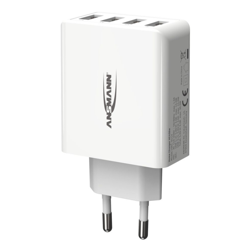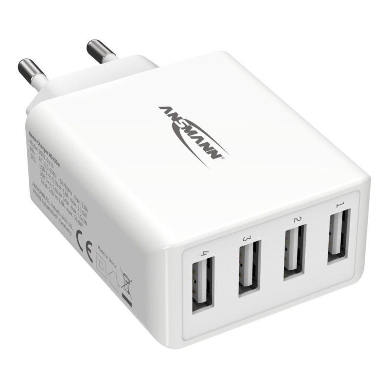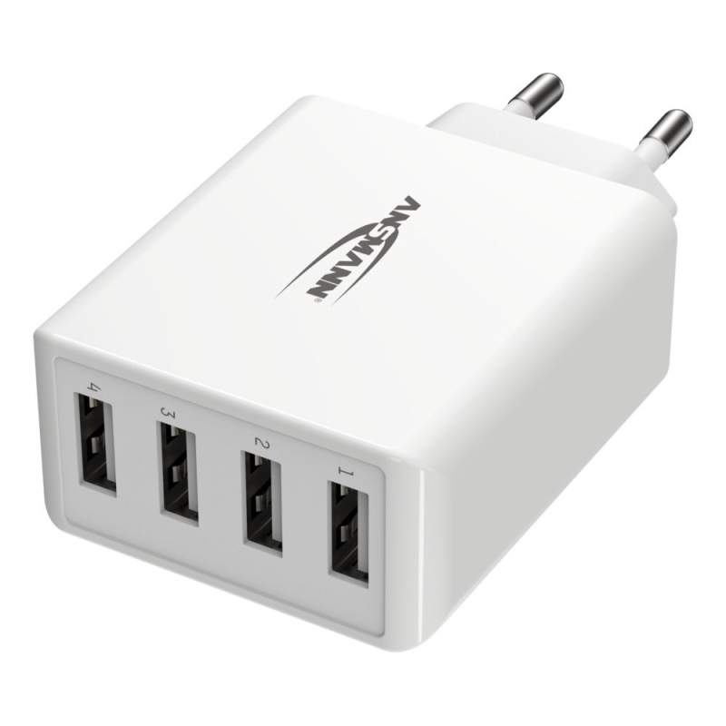 Originele Ansmann 30 Watt 4 poorts USB-A Lader Wit