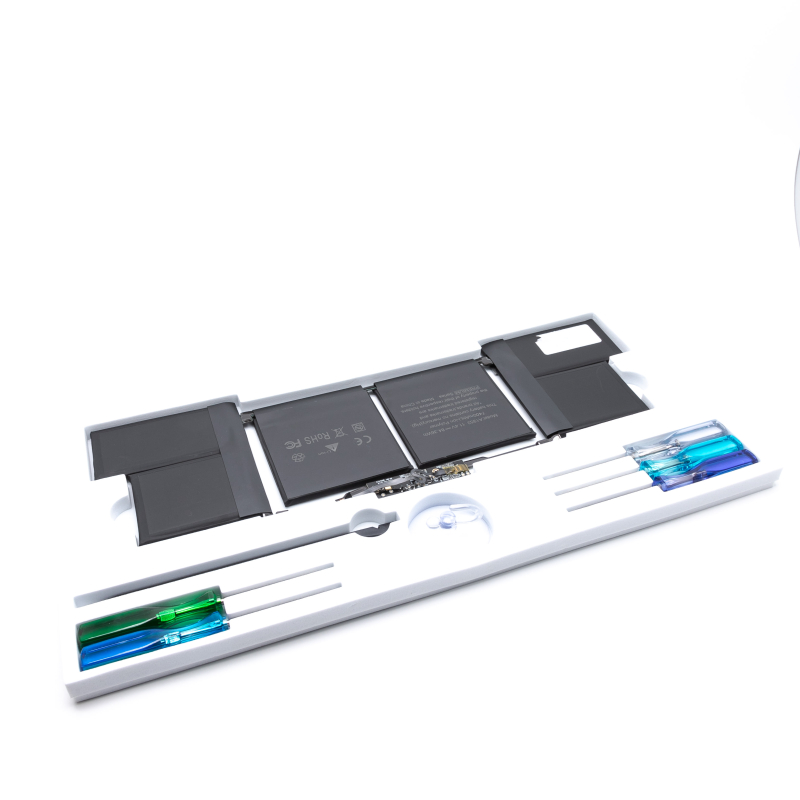LET OP ! Deze accu is voorzien van een folie + plaklaag aan de onderzijde voordat u het folie verwijderd sluit u de connector van de accu eerst aan zonder het folie van de plaklaag te verwijderen. Monteer de bodemplaat en test goed of uw Macbook correct functioneert (correct volledig oplaadt en correct werkt op alleen de accu). Wanneer dit het geval is, verwijdert u de folie van de plaklaag en kan de accu definitief ingeplakt worden. Een accu waarvan het folie is verwijderd kan namelijk niet retour worden genomen.Geschikt voor : MR932xx/A,MR942xx/A,MR952xx/A,MR962xx/A,MR972xx/A,MUQH2xx/A,MV912xx/A,MV922xx/A,MV932xx/A,MV942xx/A,MV952xx/A en MV902xx/A serie