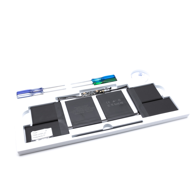LET OP ! Deze accu is voorzien van een folie + plaklaag aan de onderzijde voordat u het folie verwijderd sluit u de connector van de accu eerst aan zonder het folie van de plaklaag te verwijderen. Monteer de bodemplaat en test goed of uw Macbook correct functioneert (correct volledig oplaadt en correct werkt op alleen de accu). Wanneer dit het geval is, verwijdert u de folie van de plaklaag en kan de accu definitief ingeplakt worden. Een accu waarvan het folie is verwijderd kan namelijk niet retour worden genomen.Geschikt voor : MLH32xx/A,MLH42xx/A,MLH52xx/A,MLW72xx/A,MLW82xx/A,MLW92xx/A,MPTT2xx/A,MPTU2xx/A,MPTV2xx/A,MPTW2xx/A,MPTX2xx/A en MPTR2xx/A series