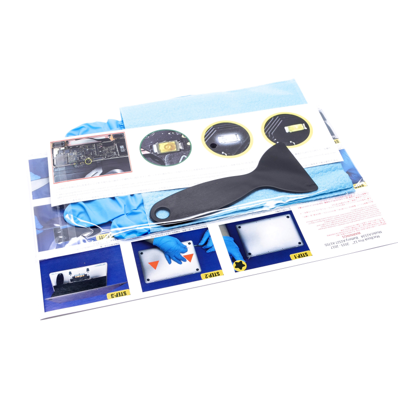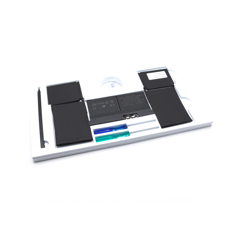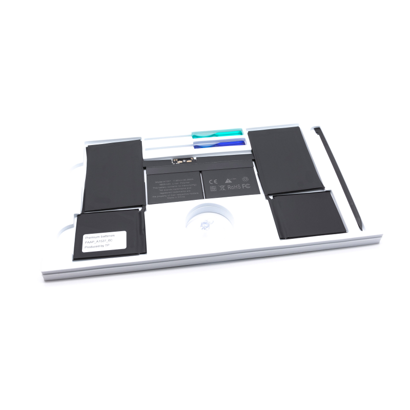 LET OP ! Deze accu is voorzien van een folie + plaklaag aan de onderzijde voordat u het folie verwijderd sluit u de connector van de accu eerst aan zonder het folie van de plaklaag te verwijderen. Monteer de bodemplaat en test goed of uw Macbook correct functioneert (correct volledig oplaadt en correct werkt op alleen de accu). Wanneer dit het geval is, verwijdert u de folie van de plaklaag en kan de accu definitief ingeplakt worden. Een accu waarvan het folie is verwijderd kan namelijk niet retour worden genomen.