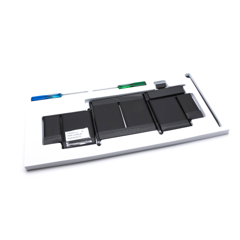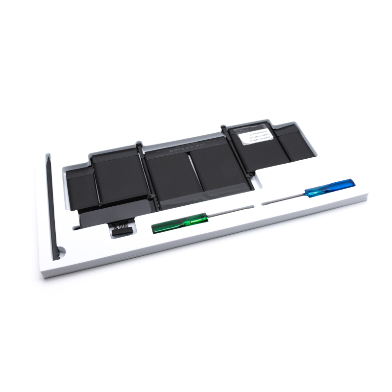 LET OP ! Deze accu is voorzien van een folie + plaklaag aan de onderzijde voordat u het folie verwijderd sluit u de connector van de accu eerst aan zonder het folie van de plaklaag te verwijderen. Monteer de bodemplaat en test goed of uw Macbook correct functioneert (correct volledig oplaadt en correct werkt op alleen de accu). Wanneer dit het geval is, verwijdert u de folie van de plaklaag en kan de accu definitief ingeplakt worden. Een accu waarvan het folie is verwijderd kan namelijk niet retour worden genomen.Geschikt voor : ME864xx/A,ME865xx/A,ME866xx/A,MGX72xx/A,MGX82xx/A en MGX92xx/A serie