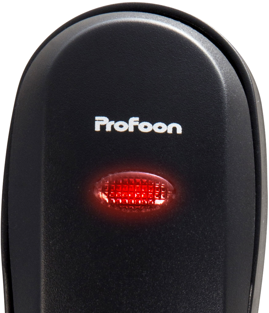 De Profoon TX-105 is een eenvoudige draad telefoon, voorzien van diverse praktische functies, zoals nummerherhaling laatst gekozen nummer, flash functie voor eenvoudig doorverbinden naar ander toestel, indicatielampje bij inkomend gesprek of voicemail, enzovoort. De telefoon is geschikt voor wandmontage.