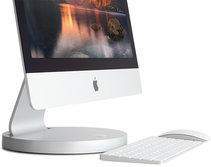 De i360 heeft een brede, stabiele stalen basis die je iMac of display veilig op zijn plaats houdt. Het zilveren afwerking past naadloos bij het ontwerp van je iMac, waardoor het een elegante en functionele toevoeging is aan je werkruimte.