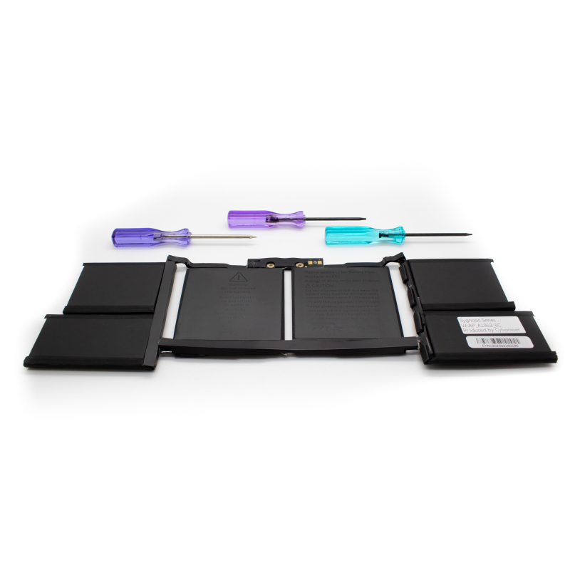 LET OP ! Deze accu is voorzien van een folie + plaklaag aan de onderzijde voordat u het folie verwijderd sluit u de connector van de accu eerst aan zonder het folie van de plaklaag te verwijderen. Monteer de bodemplaat en test goed of uw Macbook correct functioneert (correct volledig oplaadt en correct werkt op alleen de accu). Wanneer dit het geval is, verwijdert u de folie van de plaklaag en kan de accu definitief ingeplakt worden. Een accu waarvan het folie is verwijderd kan namelijk niet retour worden genomen.Geschikt voor : MR932xx/A,MR942xx/A,MR952xx/A,MR962xx/A,MR972xx/A,MUQH2xx/A,MV912xx/A,MV922xx/A,MV932xx/A,MV942xx/A,MV952xx/A en MV902xx/A serie