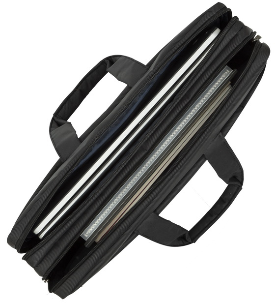 Deze laptop tas van Rivacase is gemaakt van sterk polyester met verdikte zijkanten voor extra bescherming van uw waardevolle spullen. U kunt in deze tas een netbook, laptop of tablet tot 17.3” meenemen en daarnaast is er, in de verschillende vakken, meer dan voldoende ruimte voor accessoires. De tas heeft een stevig handvat, maar ook een verstelbare schouderriem. Deze handige schouderriem heeft sterke bevestigingen aan de tas die u gemakkelijk los kan maken wanneer u dat wilt.