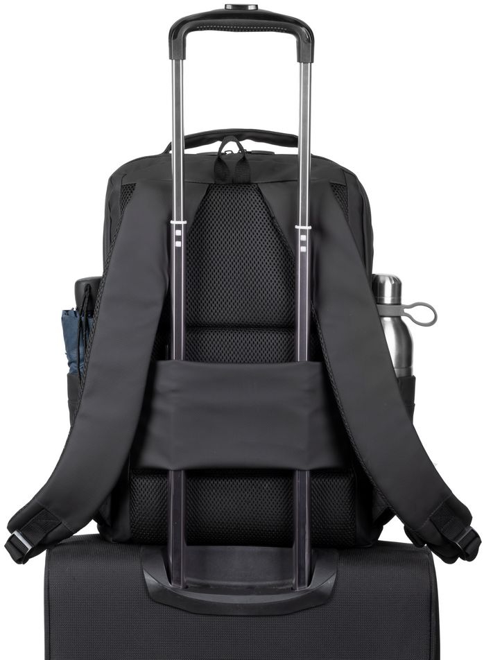 De comfortabele gewatteerde schouderbanden zorgen ervoor dat je ermee rond kunt lopen zonder last te krijgen van je schouders. Dankzij de trolley strap bevestig je de rugtas snel en makkelijk aan alle rollende koffers.