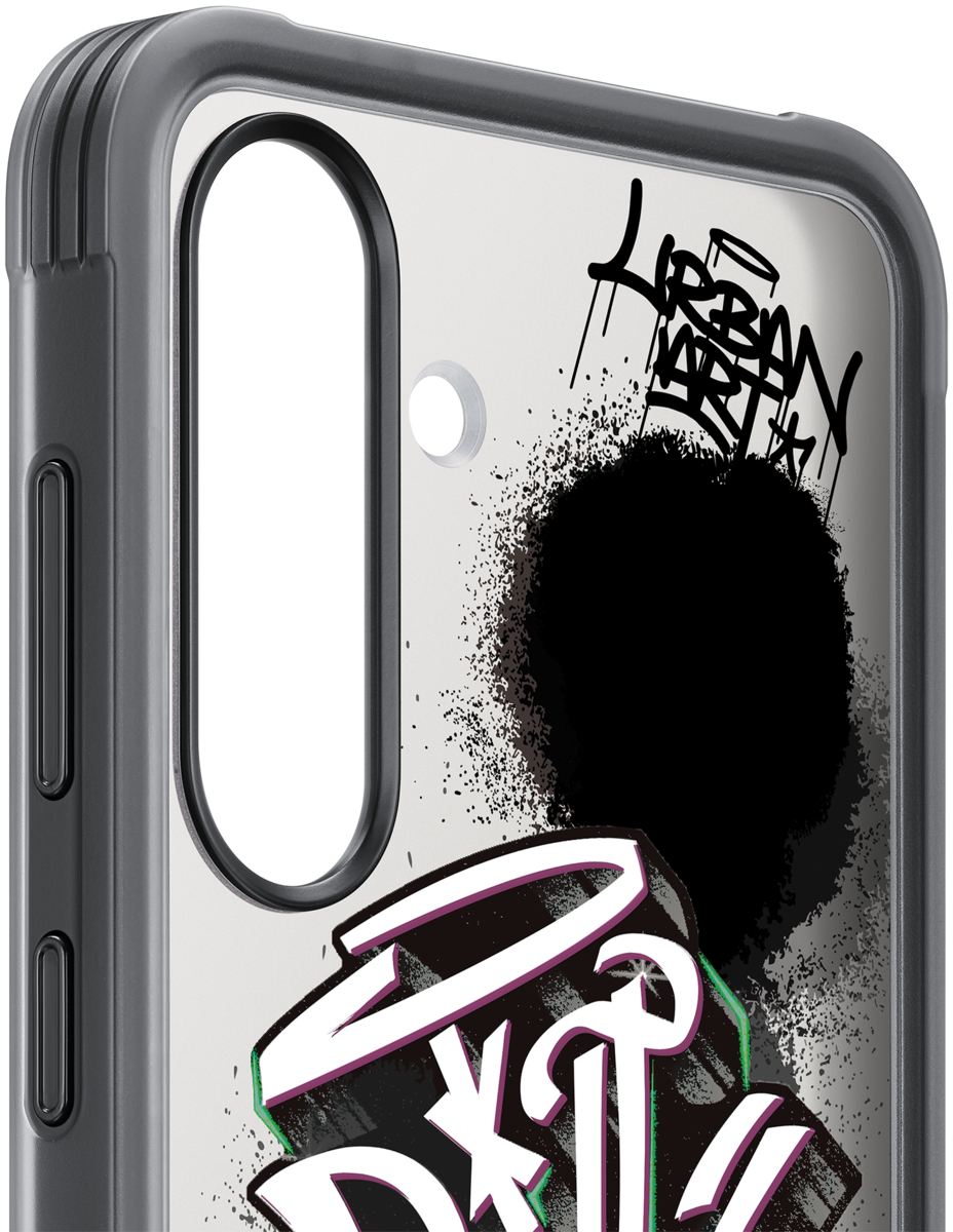 De Flipsuit Rugged Case wordt geleverd met twee verwisselbare achterkanten: een transparante variant en een transparante variant met een grafische illustratie, die een frisse, urban uitstraling geeft aan je toestel. Hiermee kun je de look van je thema en case eenvoudig aanpassen aan je eigen stijl.