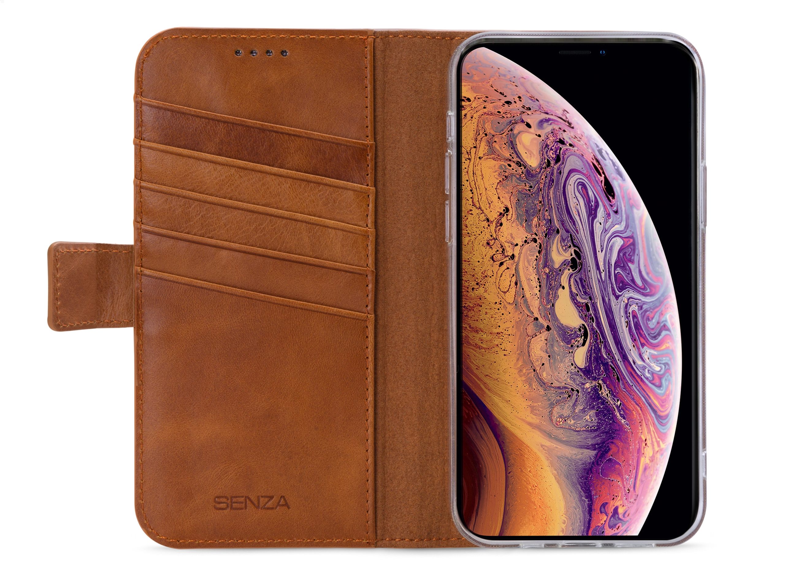 Alles aan de Senza Leather Wallet Case ademt stijl uit. Omdat elke case, met de grootste aandacht, handmatig wordt afgewerkt is elke case uniek. De stevige echt lederen buitenkant heeft een zachte binnenkant van microvezel. Binnenin vindt u ook een viertal vakjes voor pasjes en 1 groot vak voor bijvoorbeeld papiergeld. De transparante softcover beschermt uw mobiel rondom tegen beschadigingen door stoten en vallen. Doormiddel van een stevige magneet sluit uw case goed af en om te bellen hoeft u de case niet te openen, aan alle uitsparingen is gedacht.