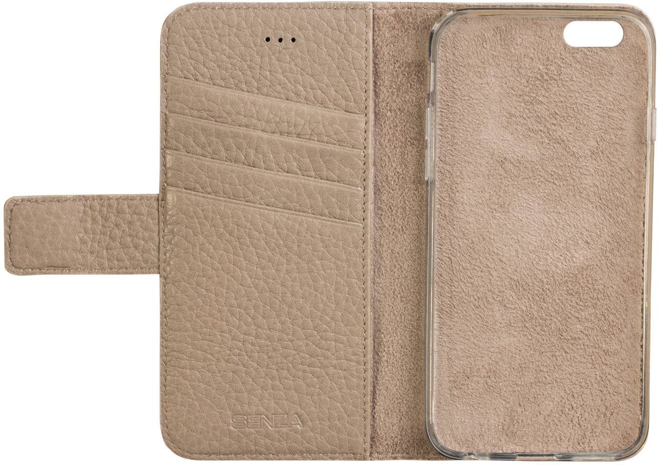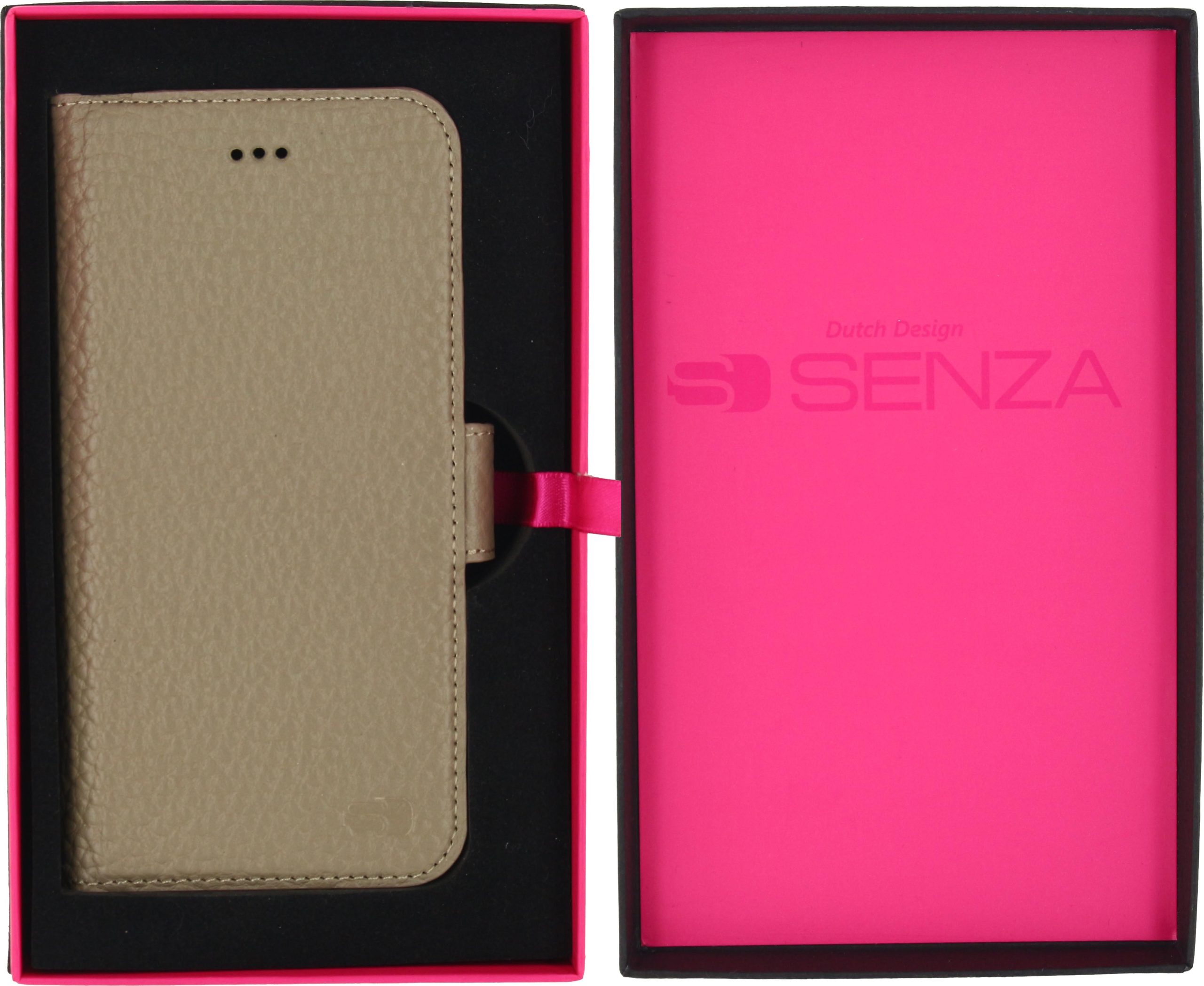 Met deze prachtige case van Senza komt u goed voor de dag. De echt leren case heeft een luxe uitstraling en een mooi design met fijne structuur. Aan de binnenzijde van deze wallet case vindt u een transparante softcover. Daardoor is uw telefoon rondom beschermd tegen mogelijke schade. Het microvezel voelt zacht aan en houdt uw telefoon stevig in de case. Daarnaast is er aan de linker binnenkant ruimte voor 4 pasjes of visitekaartjes. Ook is er een speciaal vak voor papiergeld. De case sluit met een stevige magneet, die mooi is weggewerkt en naar achteren sluit. Met een gesloten case blijven alle poorten beschikbaar door de handige uitsparingen. Zelfs bellen is mogelijk, door de gaatjes die voor de speaker zijn gemaakt.