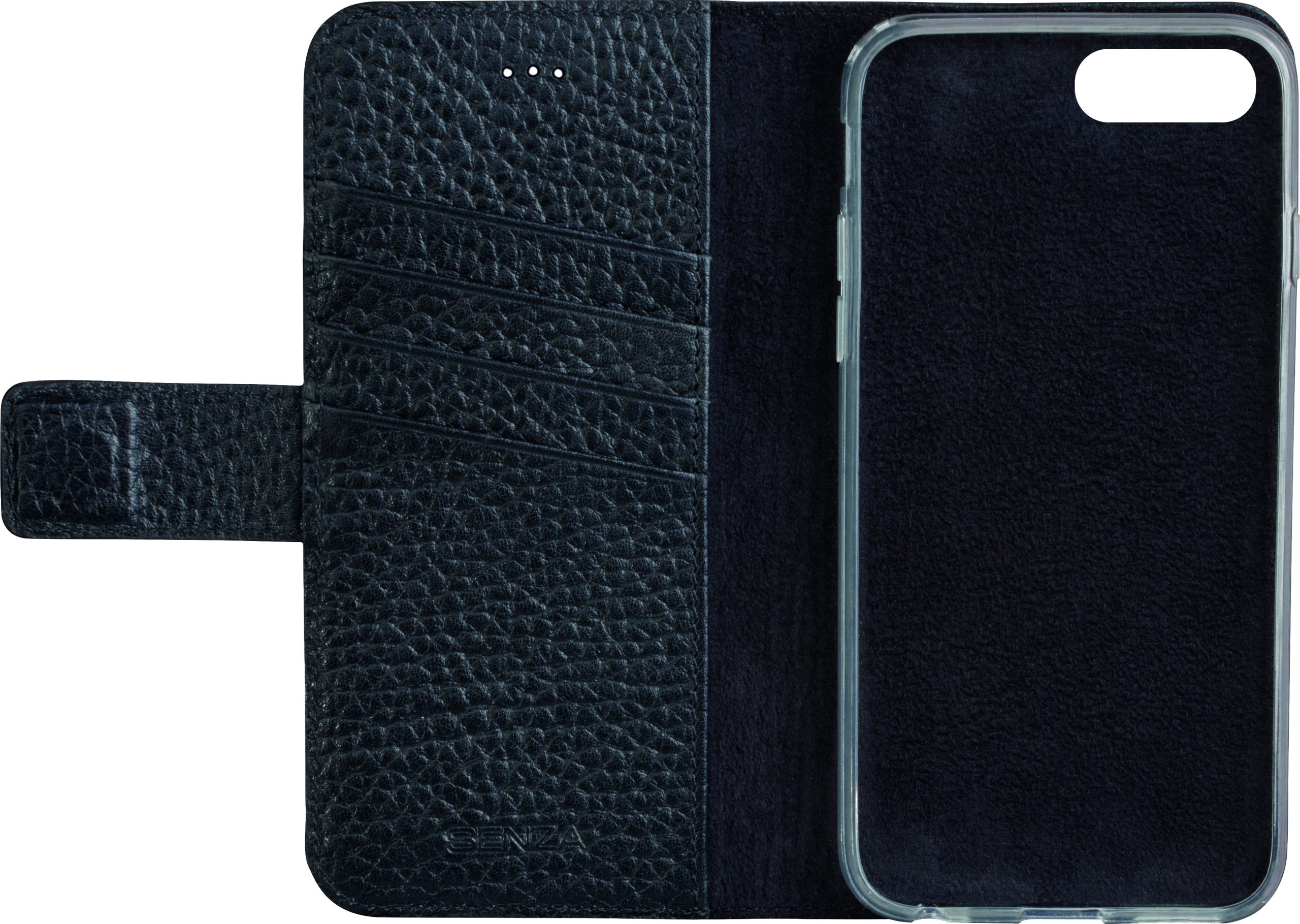 Met deze prachtige case van Senza komt u goed voor de dag. De echt leren case heeft een luxe uitstraling en een mooi design met fijne structuur. Aan de binnenzijde van deze wallet case vindt u een transparante softcover. Daardoor is uw telefoon rondom beschermd tegen mogelijke schade. Het microvezel voelt zacht aan en houdt uw telefoon stevig in de case. Daarnaast is er aan de linker binnenkant ruimte voor 4 pasjes of visitekaartjes. Ook is er een speciaal vakje voor papiergeld. De case sluit met een stevige magneet, die mooi is weggewerkt in een flapje dat naar achteren sluit. Met een gesloten case blijven alle poorten beschikbaar door de handige uitsparingen. Zelfs bellen is mogelijk, door de gaatjes die voor de speaker zijn gemaakt.