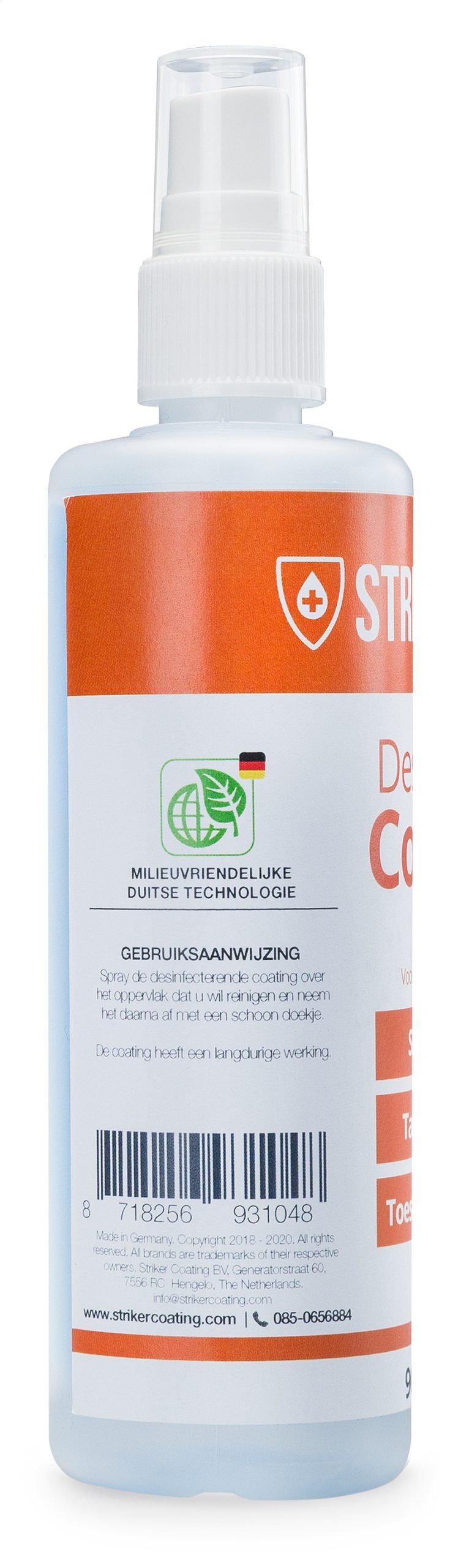 Uw toetsenbord, muis, smartphone en tablet zitten doorgaans vol bacteriën. Dat geeft niet alleen een vies gevoel, maar kan u ook serieus ziek maken. Zeker met een verslechterde weerstand of tijdens een griepepidemie bent u extra vatbaar. Met deze desinfecterende coating spray van Striker Coating beschermd u zichzelf hiertegen door de langdurige desinfecterende werking. Ook ideaal voor flexplekken of bijvoorbeeld uw kantoortelefoon.