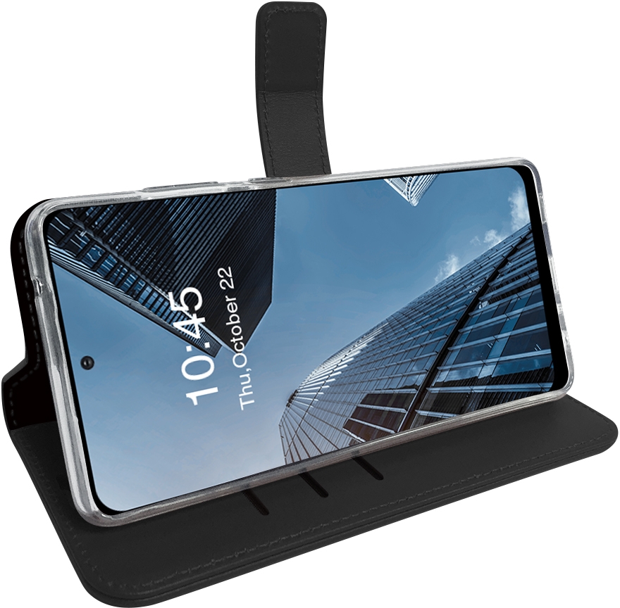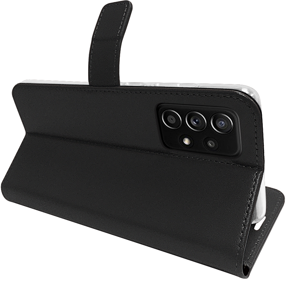 Deze zwart leren Book Case voor de Samsung Galaxy A72/A72 5G is de ideale combinatie van een stijlvolle telefoonhoes en een portemonnee. Dit telefoonhoesje is handgemaakt om een perfecte pasvorm en optimale bescherming te garanderen en tevens de levensduur van je Samsung Galaxy A72/A72 5G te verlengen.