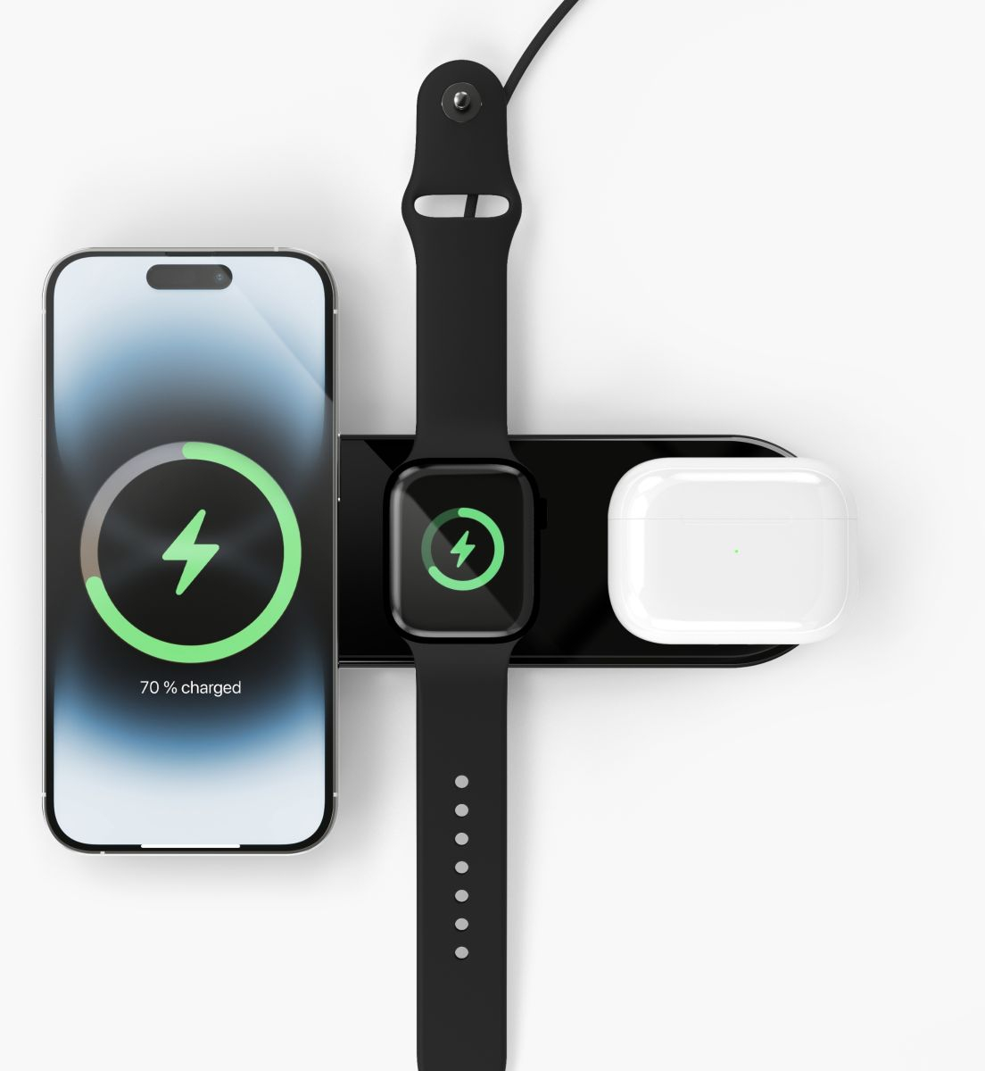 Optimaal ontworpen voor Apple-apparaten, biedt de Aura Home ruimte voor jouw iPhone, Apple Watch en AirPods. Je hebt ook de flexibiliteit om een Apple Watch en twee iPhones tegelijkertijd op te laden. De geïntegreerde magneten zorgen voor de perfecte positionering van jouw apparaten tijdens het oplaadproces, zodat ze altijd veilig en stevig op hun plaats blijven.
