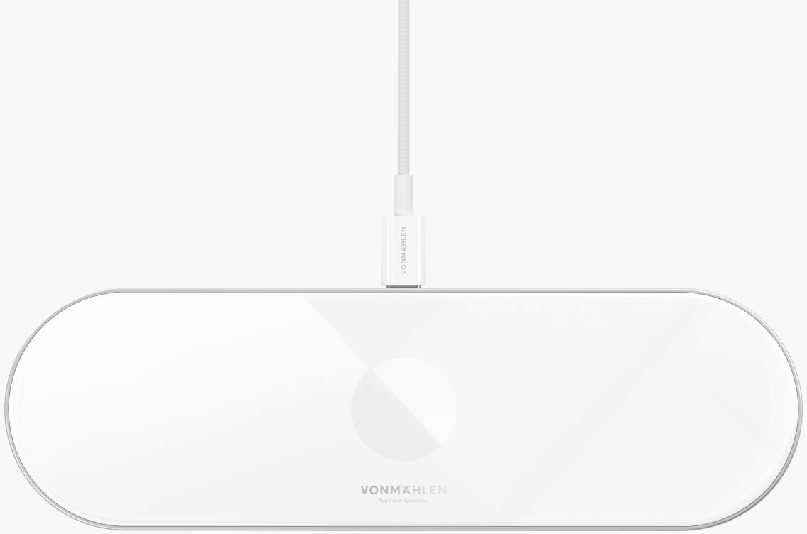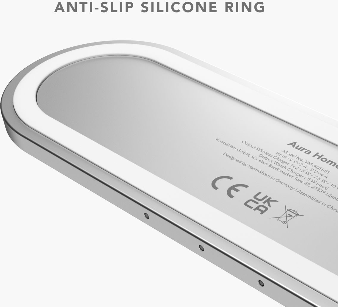 Ontdek de Aura Home van Vonmählen, een minimalistisch ontworpen draadloze oplaadstation. Gemaakt van hoogwaardige materialen zoals gehard glas en aluminium, vormt dit 3-in-1 station de perfecte accessoire voor jouw huis.