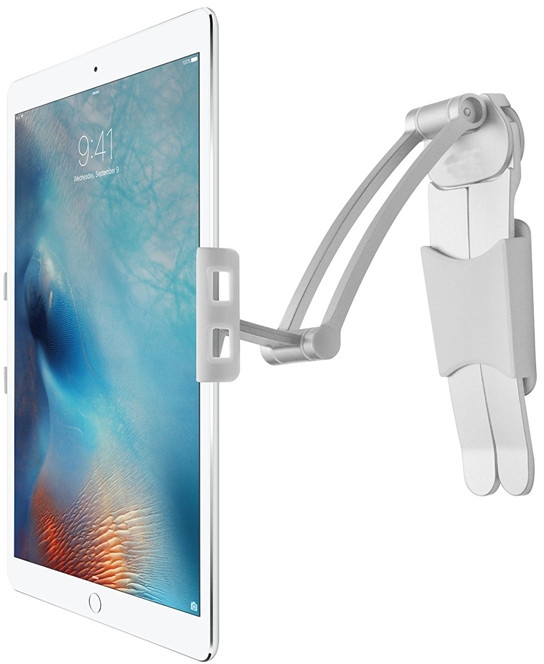 De houder is geschikt voor vele soorten tablets en e-readers. Hij is gemaakt van speciaal materiaal om extra grip te hebben op jouw tablet en is verstelbaar van 4,7”tot 11”. Meerdere scharnierpunten zorgen ervoor dat je hem in elke gewenste hoek kan draaien en plaatsen. De uitschuifbare poten zijn er voor extra stabiliteit als je er voor kiest om hem neer te zetten.