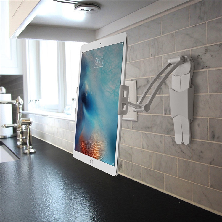 Integreer je tablet naadloos in jouw huis met deze 2-in-1 tablet stand. Deze stevige en stijlvolle aluminium standaard kan op vele plekken gemonteerd worden, bijvoorbeeld onder een keukenkastje of op een muur bij je bed. Ideaal om Youtube te volgen tijdens het koken of Netflix in je bed. Installatie is heel eenvoudig. Je kunt hem ook gewoon als houder neerzetten op je bureau of waar je maar wil.
