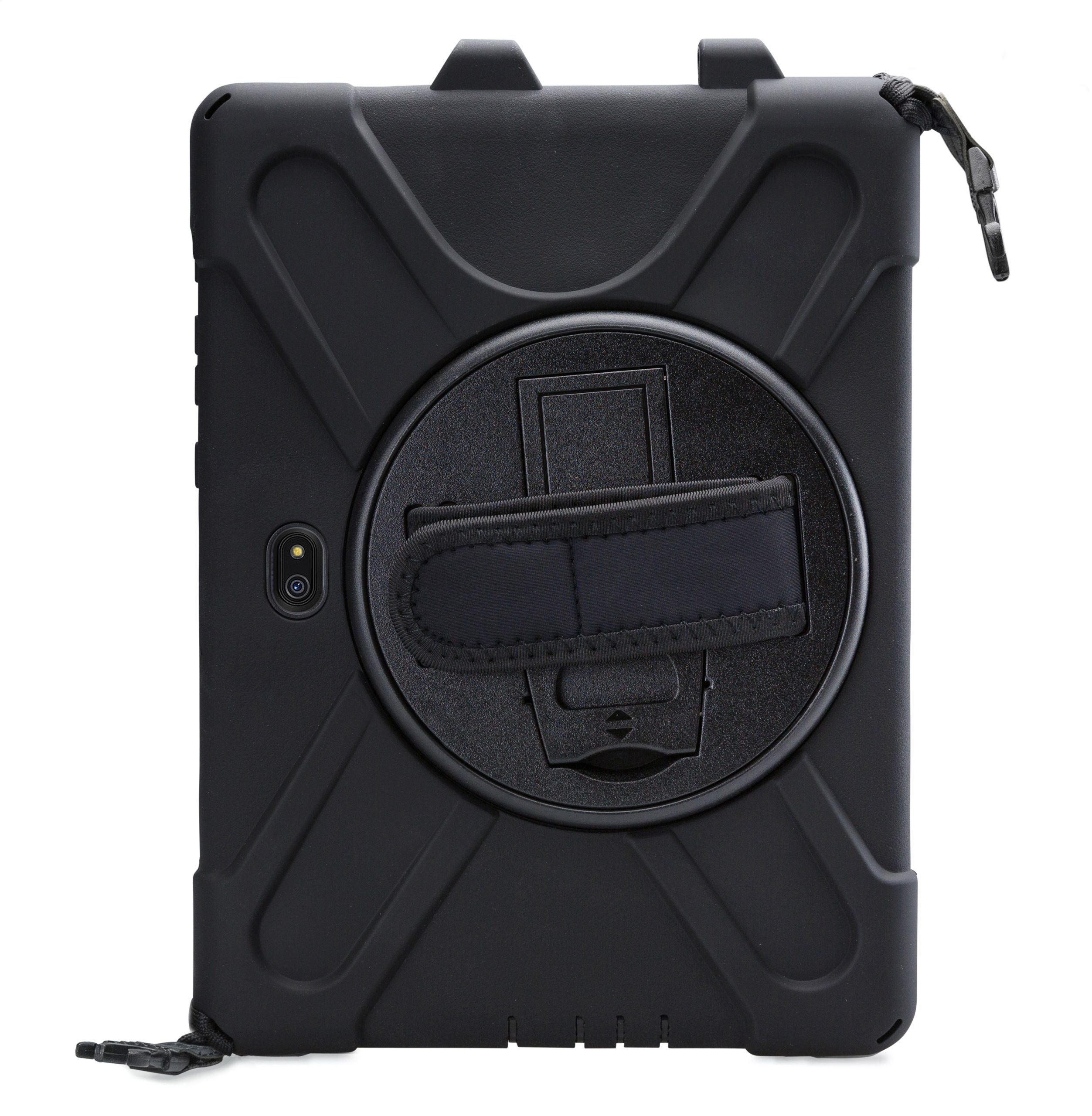 Met de Xccess Survivor All-round Case bent u van alle gemakken voorzien. De case is gemaakt uit een basis van hard plastic, met een rubberen afwerking. Zo vangt de case eventuele klappen en stoten op als de tablet per ongeluk valt. Gelukkig zal dit niet snel gebeuren, dankzij de Hand Strap op de achterzijde. Deze strap zorgt ervoor dat u de tablet goed vast kunt houden. Middels het klittenband is de strap goed strak te trekken om elke hand. Deze strap bevindt zich op een 360° draaibare schijf, zodat u de tablet in zowel landscape als portrait stand wilt gebruiken. Daarnaast kunt u de tablet als schoudertas dragen dankzij het bijgeleverde koord. Achter de Hand Strap is bovendien nog een handige standaard te vinden, zodat u comfortabel naar video's kunt kijken.