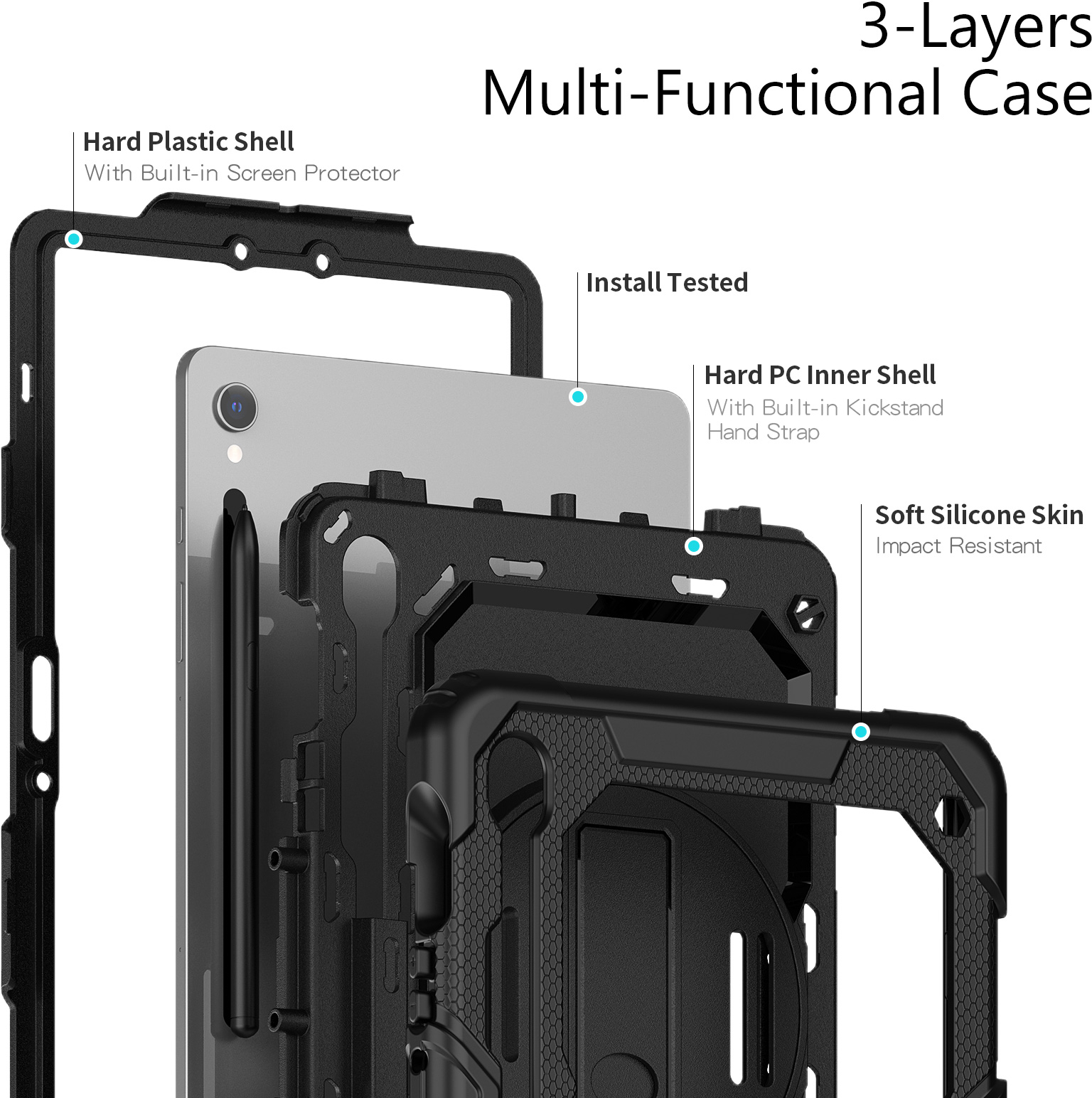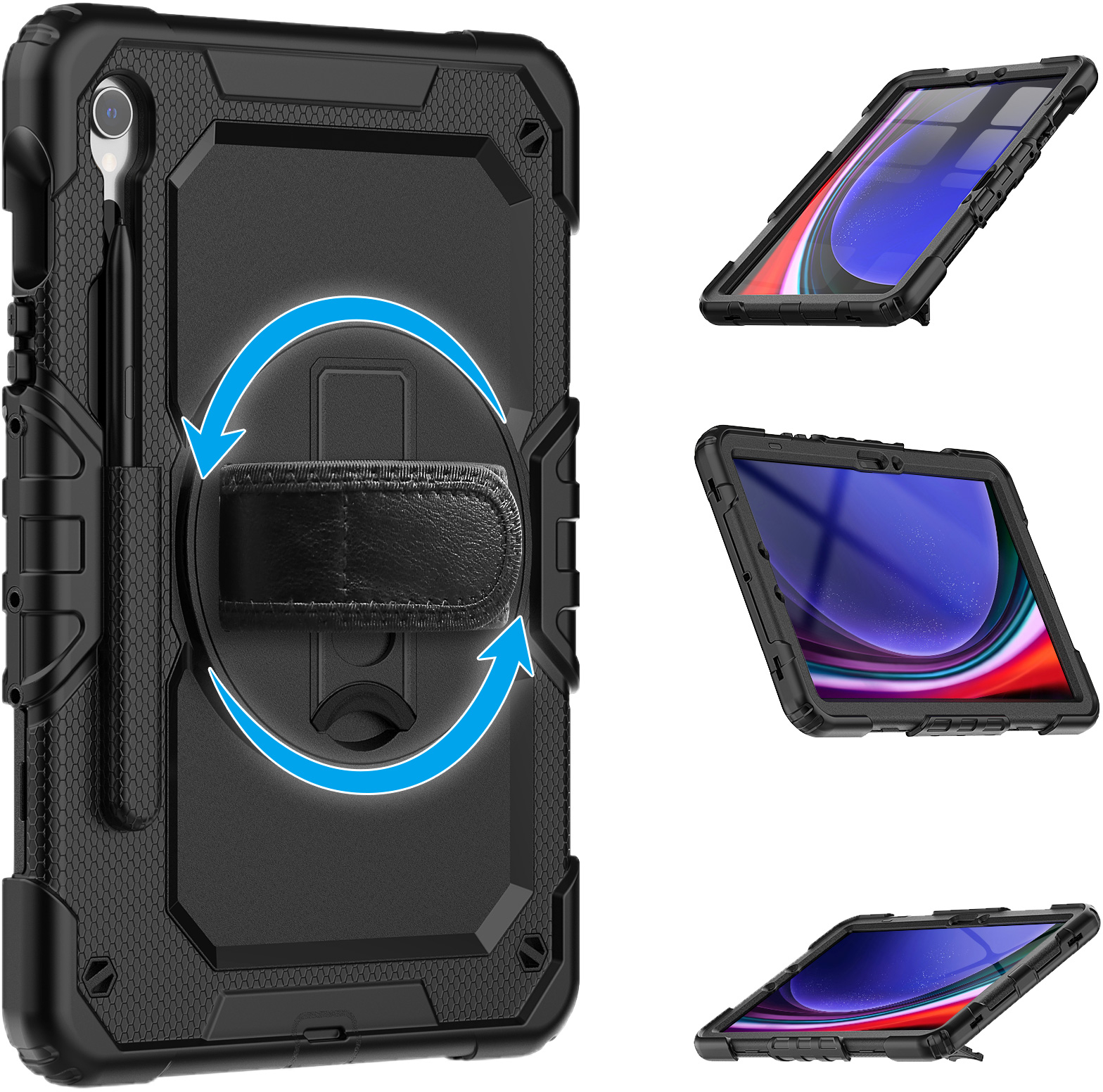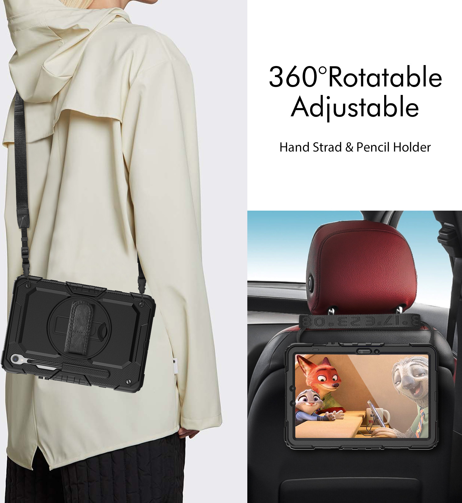 Met de Xccess Survivor All-round Case bent u van alle gemakken voorzien. De case is gemaakt uit een basis van hard plastic, met een rubberen afwerking. Zo vangt de case eventuele klappen en stoten op als de tablet per ongeluk valt. Gelukkig zal dit niet snel gebeuren, dankzij de Hand Strap op de achterzijde. Deze strap zorgt ervoor dat u de tablet goed vast kunt houden. Middels het klittenband is de strap goed strak te trekken om elke hand. Deze strap bevindt zich op een 360° draaibare schijf, zodat u de tablet in zowel landscape als portrait stand wilt gebruiken. Daarnaast kunt u de tablet als schoudertas dragen dankzij het bijgeleverde koord. Achter de Hand Strap is bovendien nog een handige standaard te vinden, zodat u comfortabel naar video's kunt kijken.