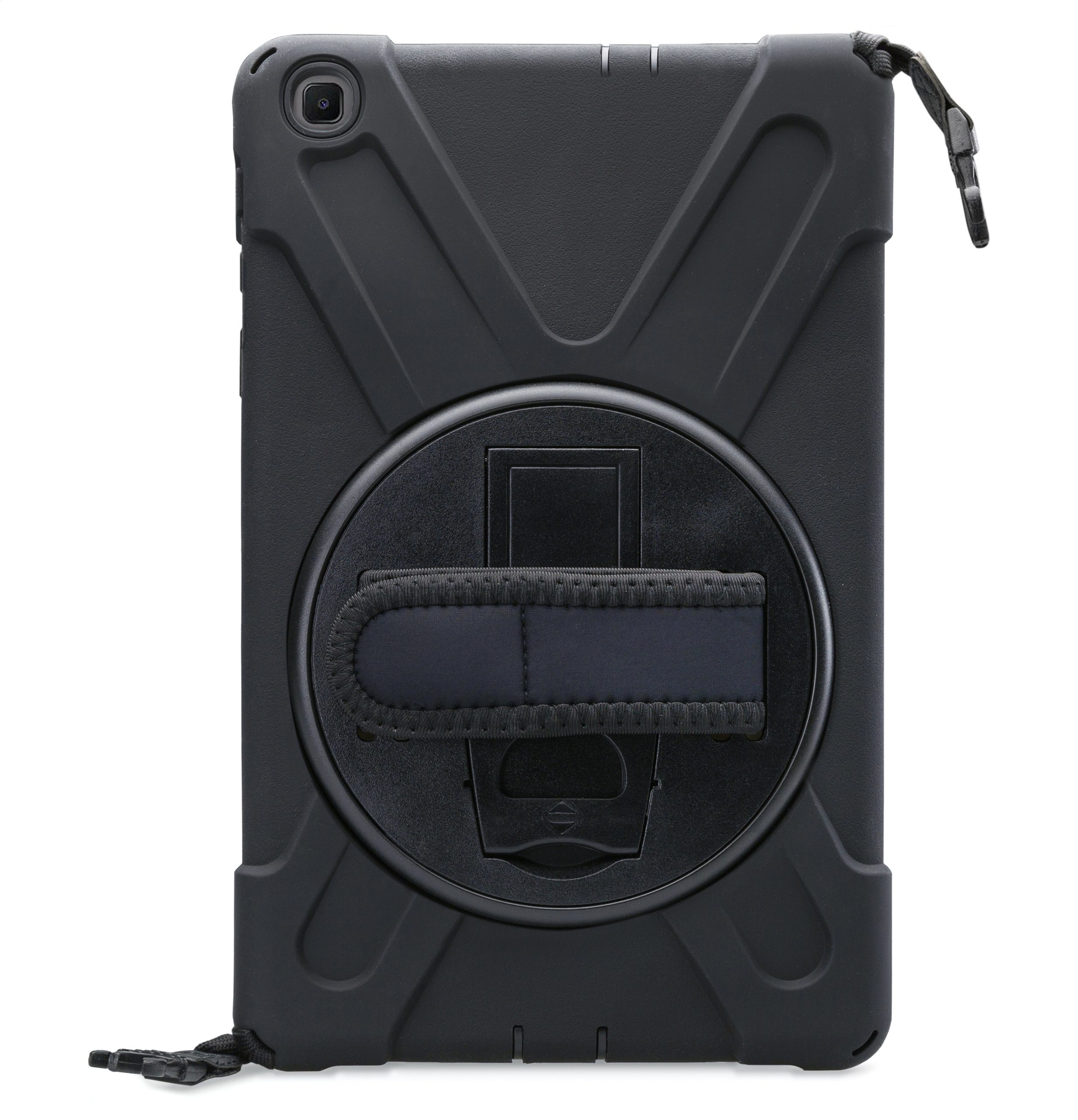 Met de Xccess Survivor All-round Case bent u van alle gemakken voorzien. De case is gemaakt uit een basis van hard plastic, met een rubberen afwerking. Zo vangt de case eventuele klappen en stoten op als de tablet per ongeluk valt. Gelukkig zal dit niet snel gebeuren, dankzij de Hand Strap op de achterzijde. Deze strap zorgt ervoor dat u de tablet goed vast kunt houden. Middels het klittenband is de strap goed strak te trekken om elke hand. Deze strap bevindt zich op een 360° draaibare schijf, zodat u de tablet in zowel landscape als portrait stand wilt gebruiken. Daarnaast kunt u de tablet als schoudertas dragen dankzij het bijgeleverde koord. Achter de Hand Strap is bovendien nog een handige standaard te vinden, zodat u comfortabel naar video's kunt kijken.