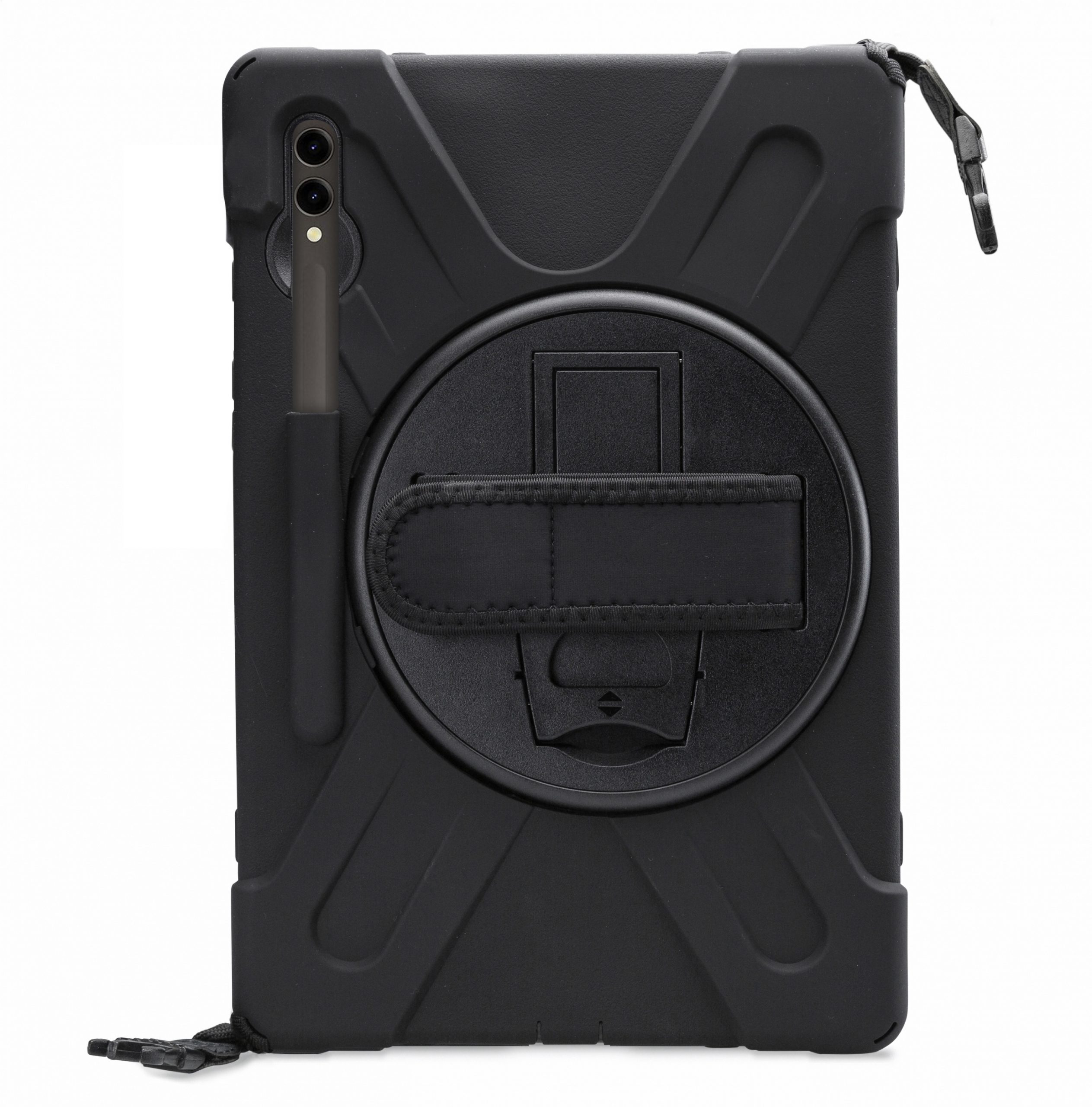 Met de Xccess Survivor All-round Case bent u van alle gemakken voorzien. De case is gemaakt uit een basis van hard plastic, met een rubberen afwerking. Zo vangt de case eventuele klappen en stoten op als de tablet per ongeluk valt. Gelukkig zal dit niet snel gebeuren, dankzij de Hand Strap op de achterzijde. Deze strap zorgt ervoor dat u de tablet goed vast kunt houden. Middels het klittenband is de strap goed strak te trekken om elke hand. Deze strap bevindt zich op een 360° draaibare schijf, zodat u de tablet in zowel landscape als portrait stand wilt gebruiken. Daarnaast kunt u de tablet als schoudertas dragen dankzij het bijgeleverde koord. Achter de Hand Strap is bovendien nog een handige standaard te vinden, zodat u comfortabel naar video's kunt kijken.