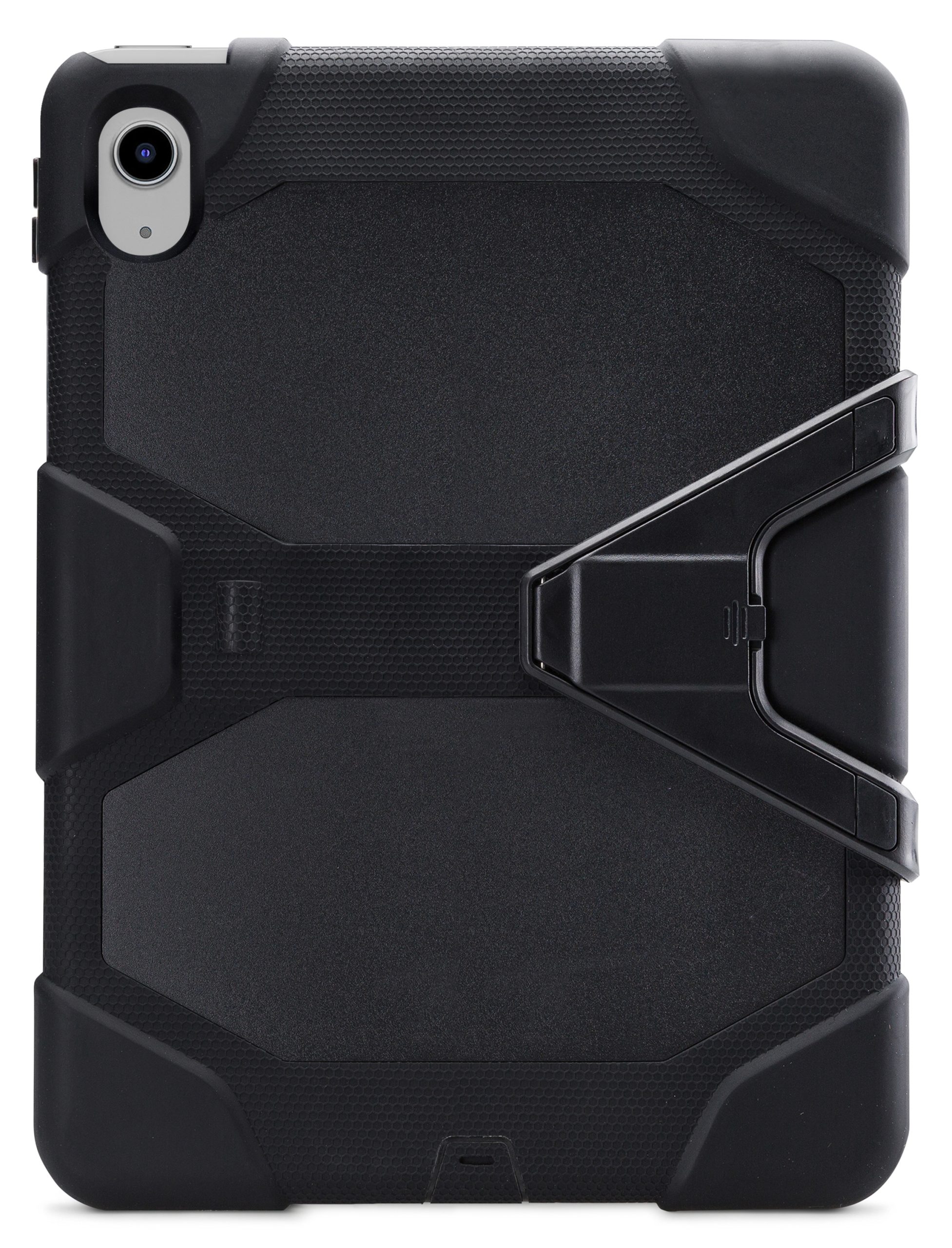 Laat u uw tablet wel eens vallen? Met de Xccess Survivor Case is dat geen probleem. Deze is namelijk gemaakt uit verschillende materialen, die elk op hun eigen manier bijdragen aan de bescherming van uw tablet. De basis is een frame van hard plastic. Daarop zit een flexibele siliconenlaag, die extra dik is op de hoeken. Zo hebben vallen, stoten of schokken geen enkele impact op de staat van uw tablet. Deze rubberen laag zorgt bovendien voor extra grip, zodat de tablet minder snel zal vallen. Omdat de randen aan de voorkant uitsteken, blijft uw beeldscherm ook langer schadevrij. De finishing touch van deze mooie case is een uitklapbare en afneembare standaard, zodat u ook handsfree kunt genieten van video's. Deze case is bijzonder geschikt voor kinderen of voor mensen met een fysiek beroep die hun tablet overal mee naartoe nemen.