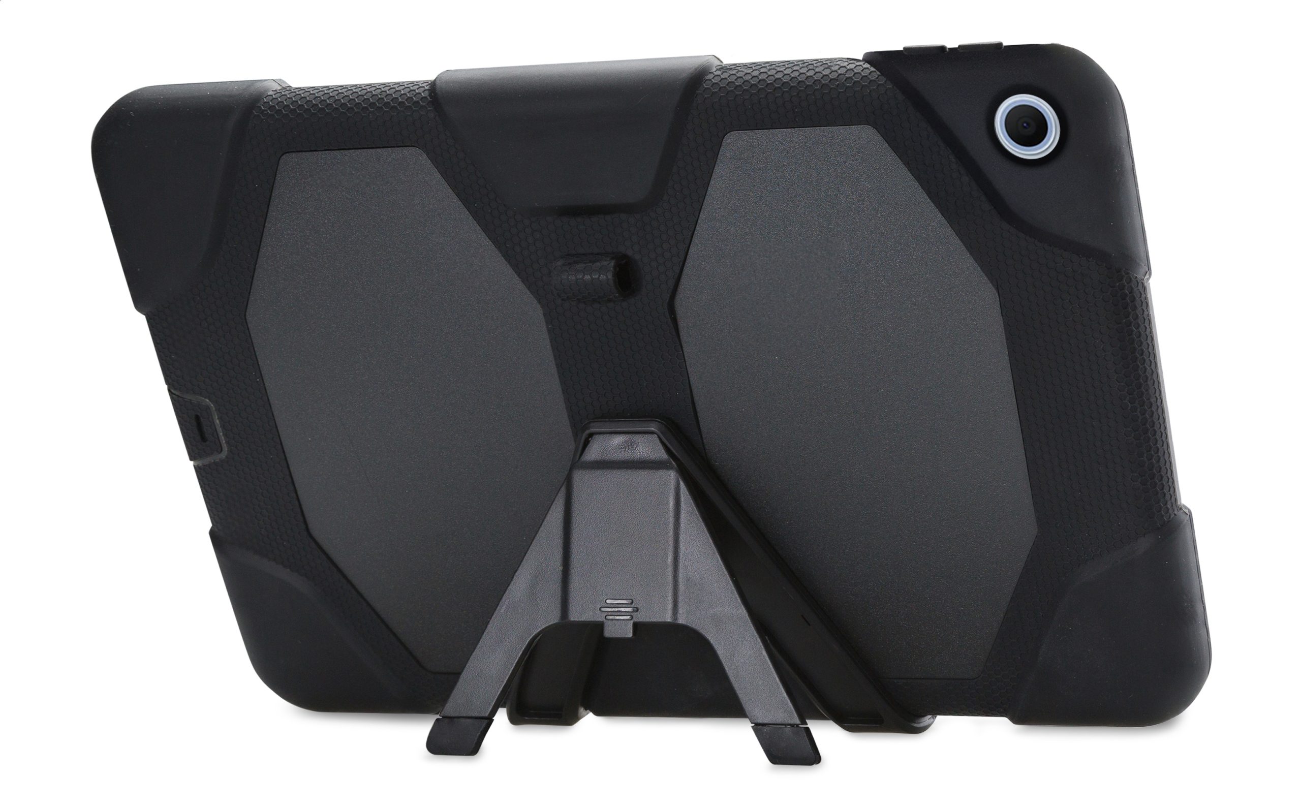 Laat u uw tablet wel eens vallen? Met de Xccess Survivor Case is dat geen probleem. Deze is namelijk gemaakt uit verschillende materialen, die elk op hun eigen manier bijdragen aan de bescherming van uw tablet. De basis is een frame van hard plastic. Daarop zit een flexibele siliconenlaag, die extra dik is op de hoeken. Zo hebben vallen, stoten of schokken geen enkele impact op de staat van uw tablet. Deze rubberen laag zorgt bovendien voor extra grip, zodat de tablet minder snel zal vallen. Omdat de randen aan de voorkant uitsteken, blijft uw beeldscherm ook langer schadevrij. De finishing touch van deze mooie case is een uitklapbare en afneembare standaard, zodat u ook handsfree kunt genieten van video's. Deze case is bijzonder geschikt voor kinderen of voor mensen met een fysiek beroep die hun tablet overal mee naartoe nemen.