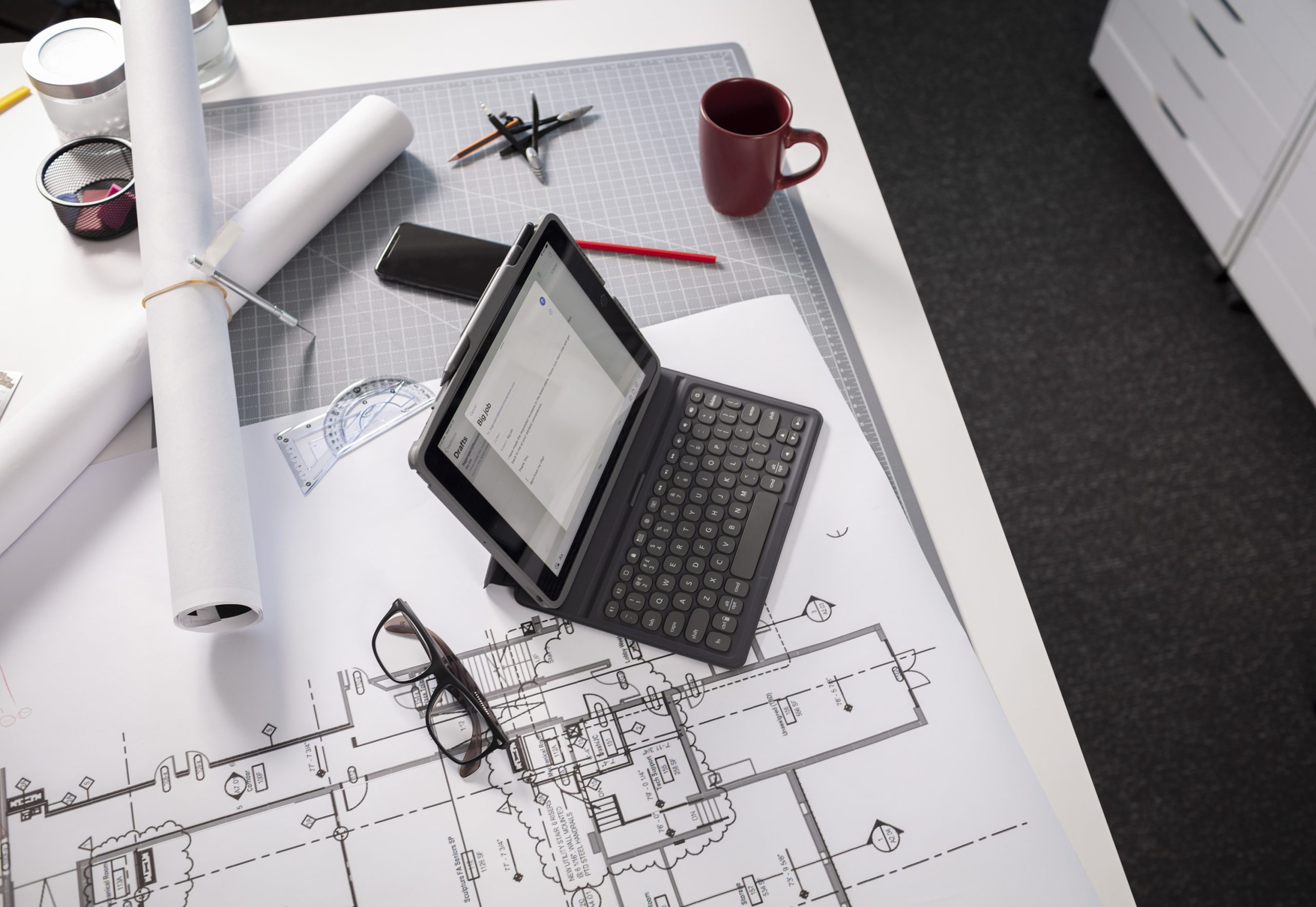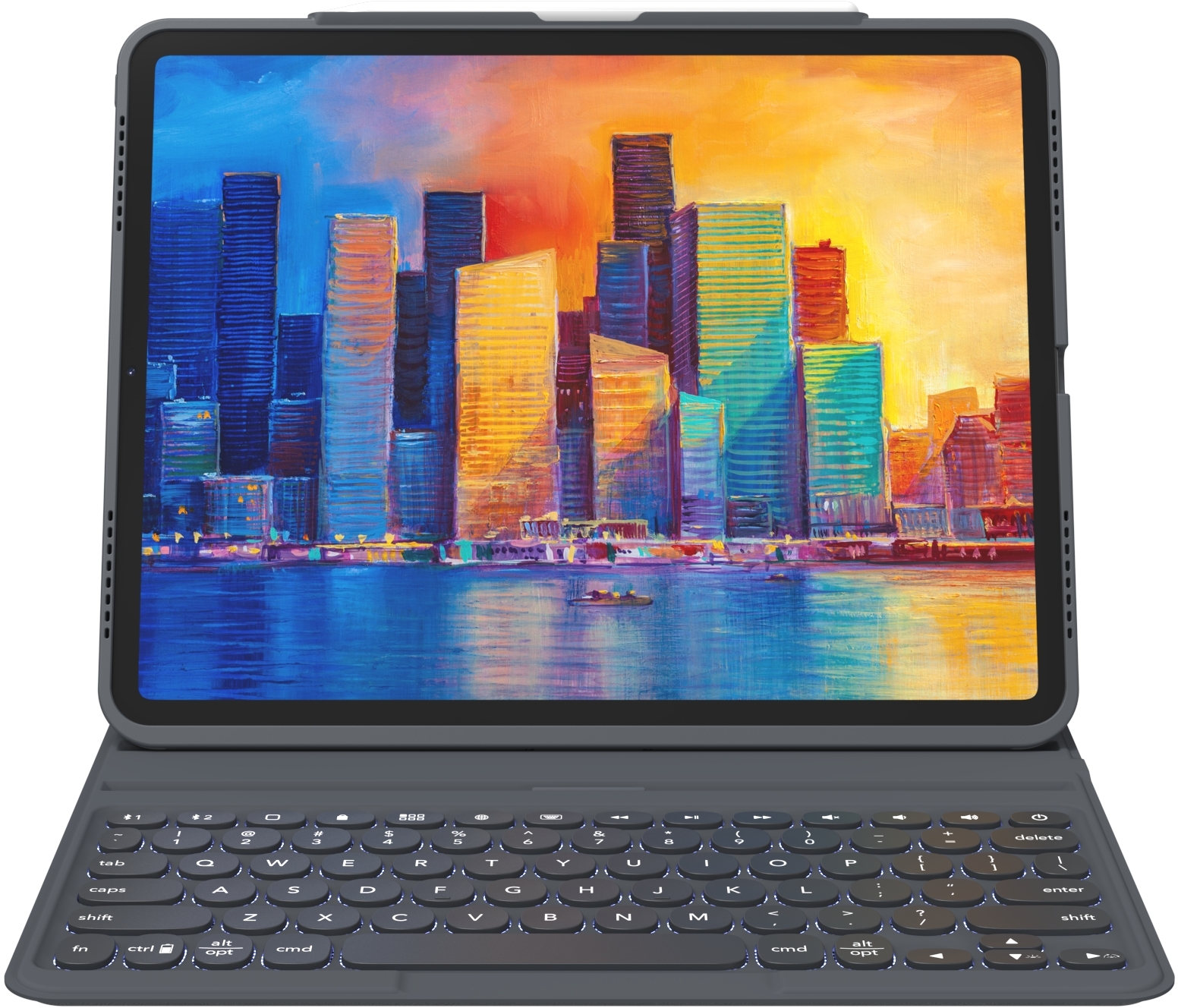 Jouw tablet is in 2 verschillende posities te zetten wanneer je gebruik maakt van het toetsenbord. De case waar je tablet in zit is los te koppelen van het toetsenbord waardoor je de tablet ook op andere manieren kan gebruiken. Ben je ook nog in het bezit van een Apple Pencil, dan kan je deze ook kwijt in deze case in de speciaal daarvoor gemaakte uitsparing.