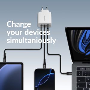 Mobilize Wall Charger 2X Usb-C + 1X Usb Gan 65W With Pd/Pps White