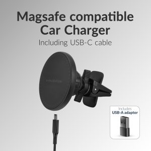 Mobilize Wireless Magsafe Compatible Car Holder/Charger 5W/7.5W/10W/15W Black