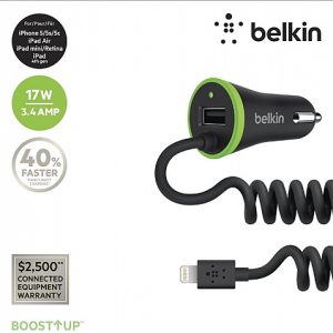Mob Belkin Car Charger With Usb Port + Coiled Lightning Connector 3.4A Black